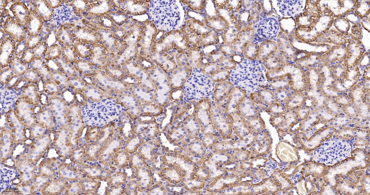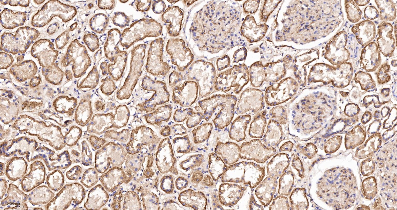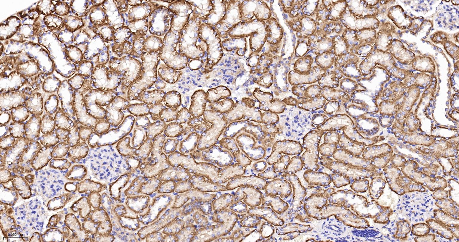 Paraformaldehyde-fixed, paraffin embedded Mouse Kidney; Antigen retrieval by boiling in sodium citrate buffer (pH6.0) for 15 min; The section was incubated with SPECA Recombinant Monoclonal Antibody, Unconjugated (bsm-61537R) at 1:200 overnight at 4°C, followed by conjugation to the bs-0295G-HRP and DAB (C-0010) staining.