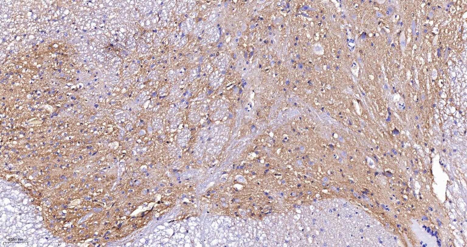 Paraformaldehyde-fixed, paraffin embedded Rat Spinal Cord; Antigen retrieval by boiling in sodium citrate buffer (pH6.0) for 15 min; The section was incubated with SPECA Recombinant Monoclonal Antibody, Unconjugated (bsm-61537R) at 1:200 overnight at 4°C, followed by conjugation to the bs-0295G-HRP and DAB (C-0010) staining.