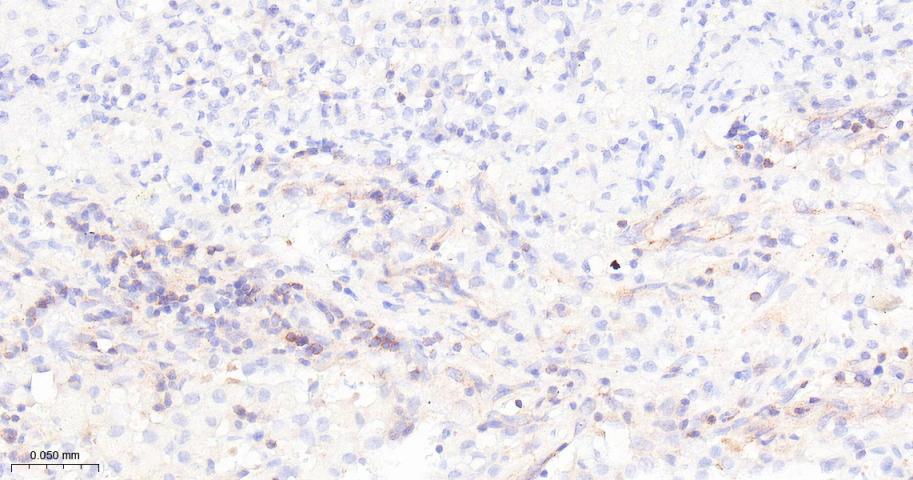 Paraformaldehyde-fixed, paraffin embedded Human Lung Cancer; Antigen retrieval by boiling in sodium citrate buffer (pH6.0) for 15 min; Antibody incubation with BAG3 Monoclonal Antibody, Unconjugated(bsm-61540R) at 1:200 overnight at 4°C, followed by conjugation to the bs-0295G-HRP and DAB (C-0010) staining.