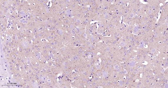 Paraformaldehyde-fixed, paraffin embedded Rat Cerebrum; Antigen retrieval by boiling in sodium citrate buffer (pH6.0) for 15 min; Antibody incubation with IP3 receptor Monoclonal Antibody, Unconjugated(bsm-61555R) at 1:200 overnight at 4°C, followed by conjugation to the bs-0295G-HRP and DAB (C-0010) staining.