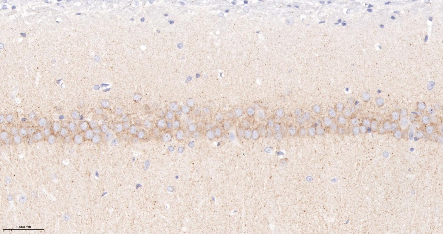 Paraformaldehyde-fixed, paraffin embedded Mouse Cerebrum; Antigen retrieval by boiling in sodium citrate buffer (pH6.0) for 15 min; Antibody incubation with IP3 receptor Monoclonal Antibody, Unconjugated(bsm-61555R) at 1:200 overnight at 4°C, followed by conjugation to the bs-0295G-HRP and DAB (C-0010) staining.