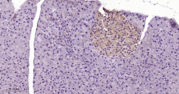 Paraformaldehyde-fixed, paraffin embedded Mouse Pancreas; Antigen retrieval by boiling in sodium citrate buffer (pH6.0) for 15 min; Antibody incubation with TXNRD1 Monoclonal Antibody, Unconjugated(bsm-61558R) at 1:200 overnight at 4°C, followed by conjugation to the bs-0295G-HRP and DAB (C-0010) staining.
