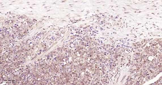 Paraformaldehyde-fixed, paraffin embedded Human Prostate tumors; Antigen retrieval by boiling in sodium citrate buffer (pH6.0) for 15 min; Antibody incubation with TXNRD1 Monoclonal Antibody, Unconjugated(bsm-61558R) at 1:200 overnight at 4°C, followed by conjugation to the bs-0295G-HRP and DAB (C-0010) staining.