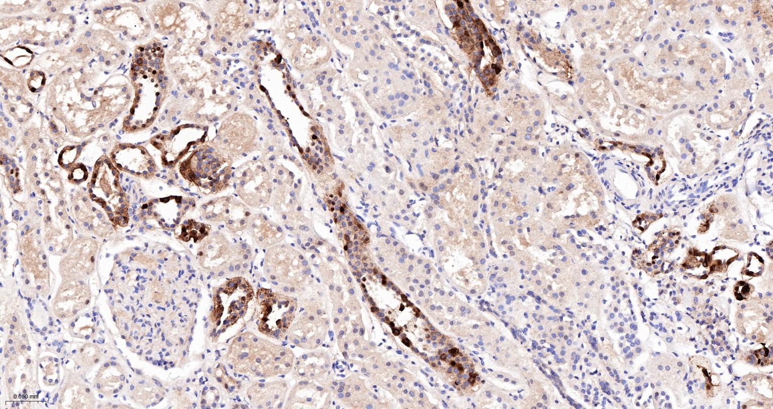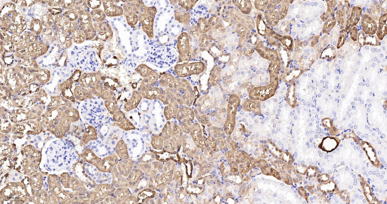Paraformaldehyde-fixed, paraffin embedded Human Kidney; Antigen retrieval by boiling in sodium citrate buffer (pH6.0) for 15 min; The section was incubated with CA II Monoclonal Antibody, Unconjugated (bsm-61561R) at 1:200 overnight at 4°C, followed by conjugation to the bs-0295G-HRP and DAB (C-0010) staining.