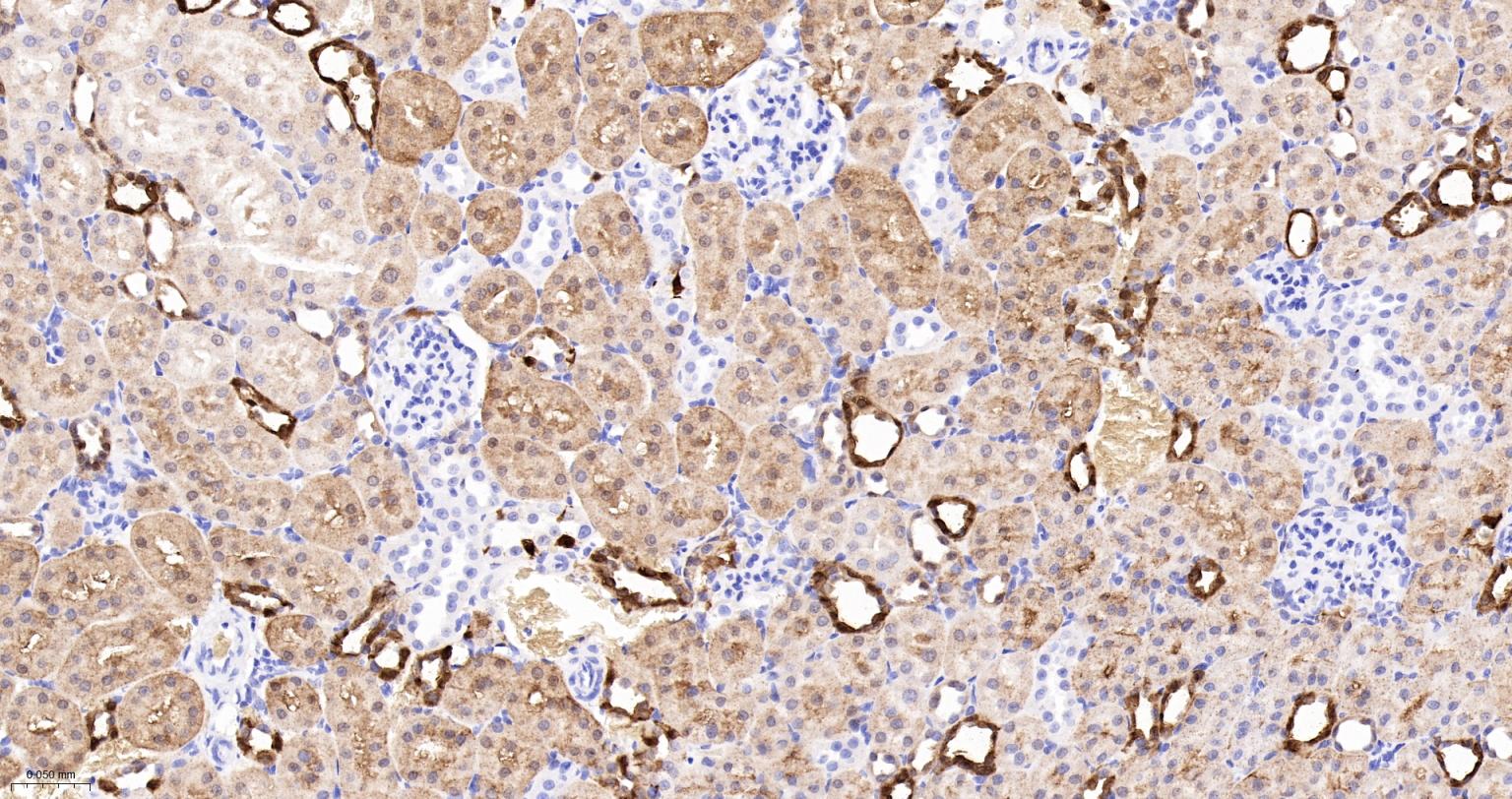 Paraformaldehyde-fixed, paraffin embedded Rat Kidney; Antigen retrieval by boiling in sodium citrate buffer (pH6.0) for 15 min; The section was incubated with CA II Monoclonal Antibody, Unconjugated (bsm-61561R) at 1:200 overnight at 4°C, followed by conjugation to the bs-0295G-HRP and DAB (C-0010) staining.