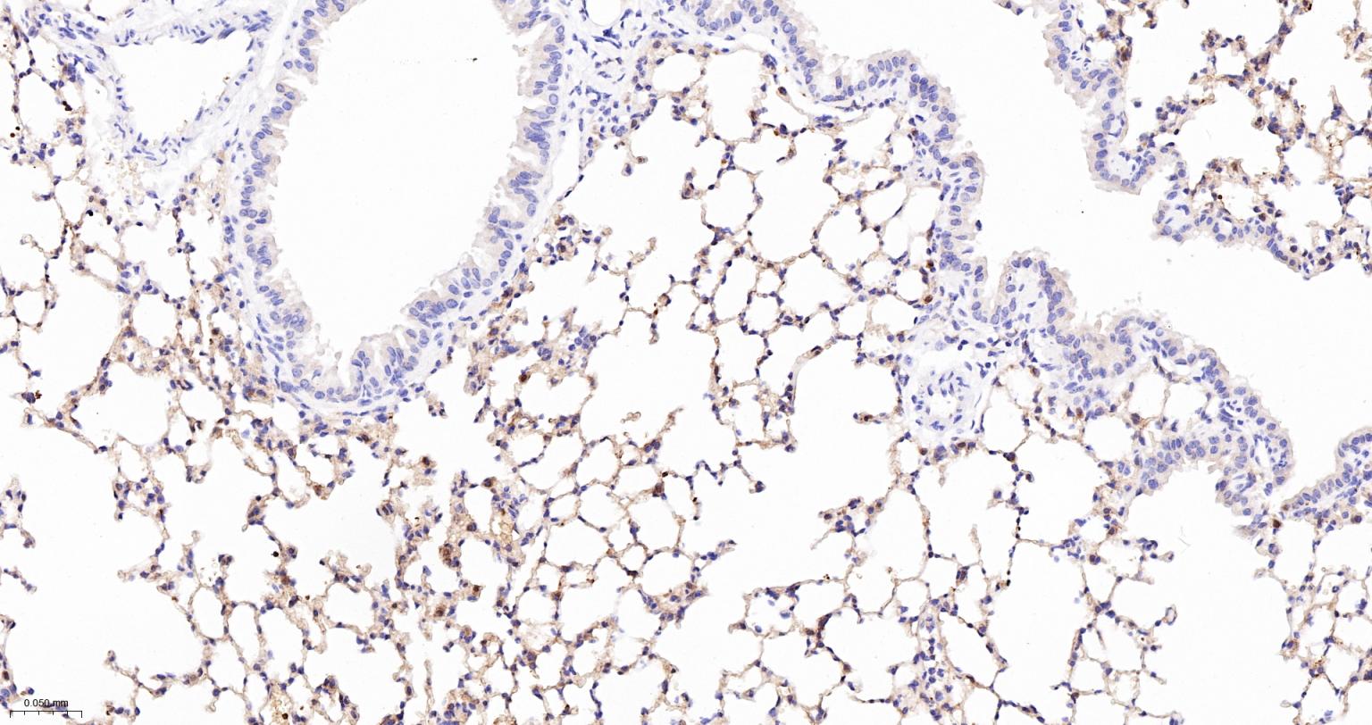 Paraformaldehyde-fixed, paraffin embedded Mouse Lung; Antigen retrieval by boiling in sodium citrate buffer (pH6.0) for 15 min; The section was incubated with CA II Monoclonal Antibody, Unconjugated (bsm-61561R) at 1:200 overnight at 4°C, followed by conjugation to the bs-0295G-HRP and DAB (C-0010) staining.