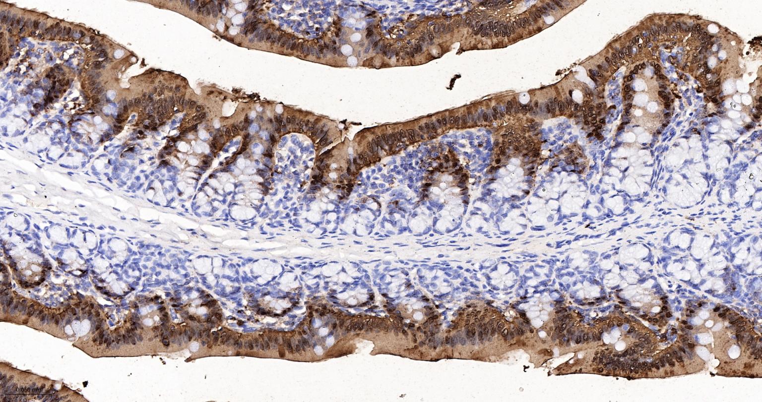 Paraformaldehyde-fixed, paraffin embedded Mouse Colon; Antigen retrieval by boiling in sodium citrate buffer (pH6.0) for 15 min; The section was incubated with CA II Monoclonal Antibody, Unconjugated (bsm-61561R) at 1:200 overnight at 4°C, followed by conjugation to the bs-0295G-HRP and DAB (C-0010) staining.