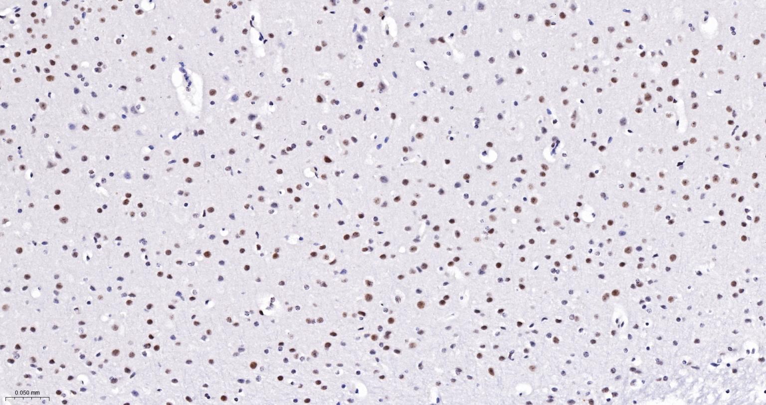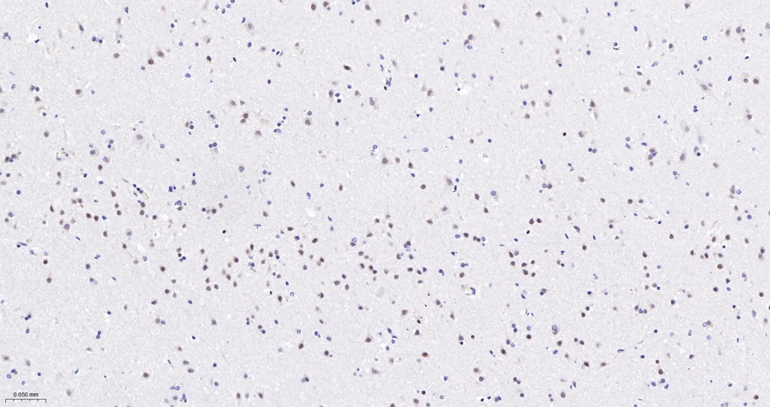 Paraformaldehyde-fixed, paraffin embedded Human Cerebrum; Antigen retrieval by boiling in sodium citrate buffer (pH6.0) for 15 min; The section was incubated with SIN3A Monoclonal Antibody, Unconjugated (bsm-61578R) at 1:200 overnight at 4°C, followed by conjugation to the bs-0295G-HRP and DAB (C-0010) staining.