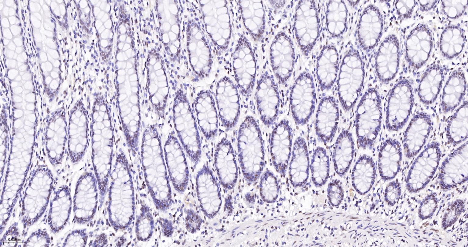 Paraformaldehyde-fixed, paraffin embedded Human Colon; Antigen retrieval by boiling in sodium citrate buffer (pH6.0) for 15 min; The section was incubated with SIN3A Monoclonal Antibody, Unconjugated (bsm-61578R) at 1:200 overnight at 4°C, followed by conjugation to the bs-0295G-HRP and DAB (C-0010) staining.