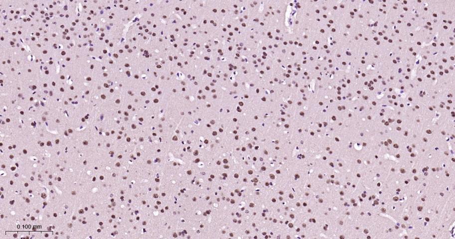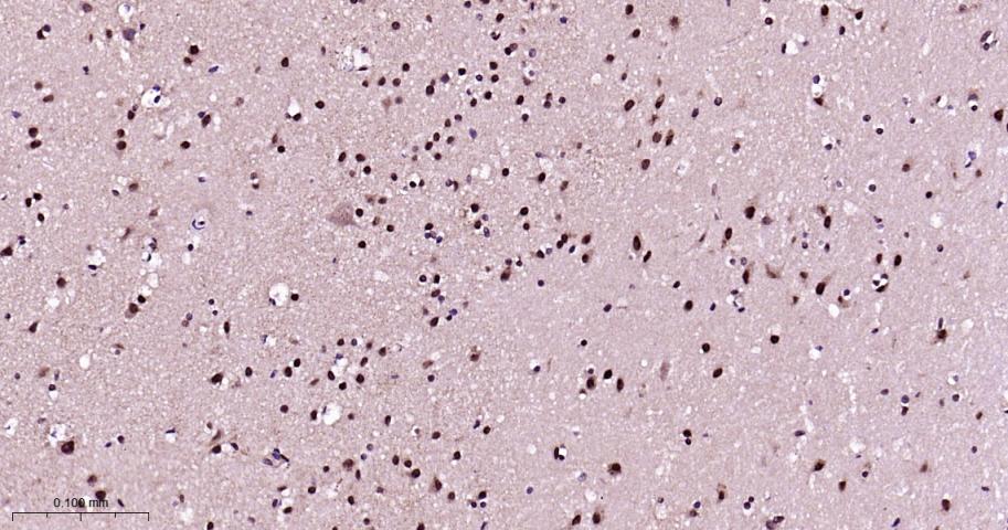 Paraformaldehyde-fixed, paraffin embedded Rat brain; Antigen retrieval by boiling in sodium citrate buffer (pH6.0) for 15 min; The section was incubated with HP1 gamma Monoclonal Antibody, Unconjugated(bsm-61603R) at 1:200 overnight at 4°C, followed by conjugation to the bs-0295G-HRP and DAB (C-0010) staining.