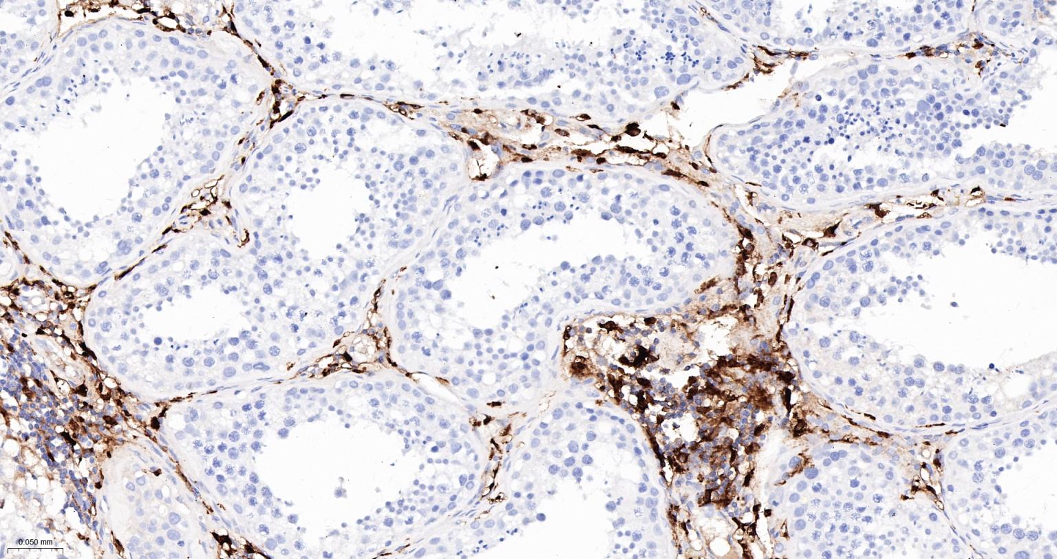 Paraformaldehyde-fixed, paraffin embedded Human Testicles; Antigen retrieval by boiling in sodium citrate buffer (pH6.0) for 15 min; The section was incubated with Coagulation factor XIII A Monoclonal Antibody, Unconjugated (bsm-61604R) at 1:200 overnight at 4°C, followed by conjugation to the bs-0295G-HRP and DAB (C-0010) staining.