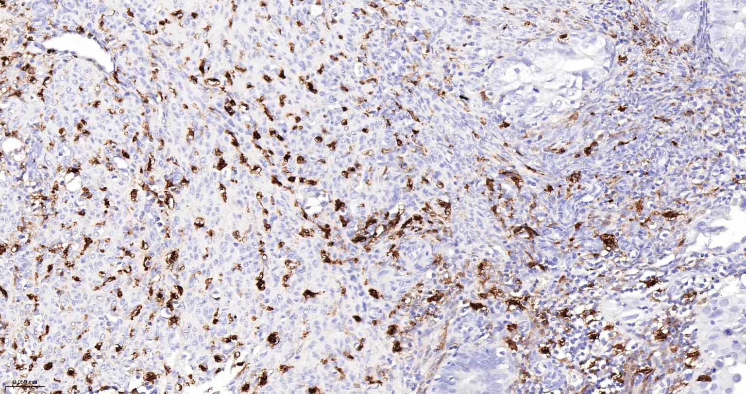 Paraformaldehyde-fixed, paraffin embedded Human Endometrial Cancer; Antigen retrieval by boiling in sodium citrate buffer (pH6.0) for 15 min; The section was incubated with Coagulation factor XIII A Monoclonal Antibody, Unconjugated (bsm-61604R) at 1:200 overnight at 4°C, followed by conjugation to the bs-0295G-HRP and DAB (C-0010) staining.