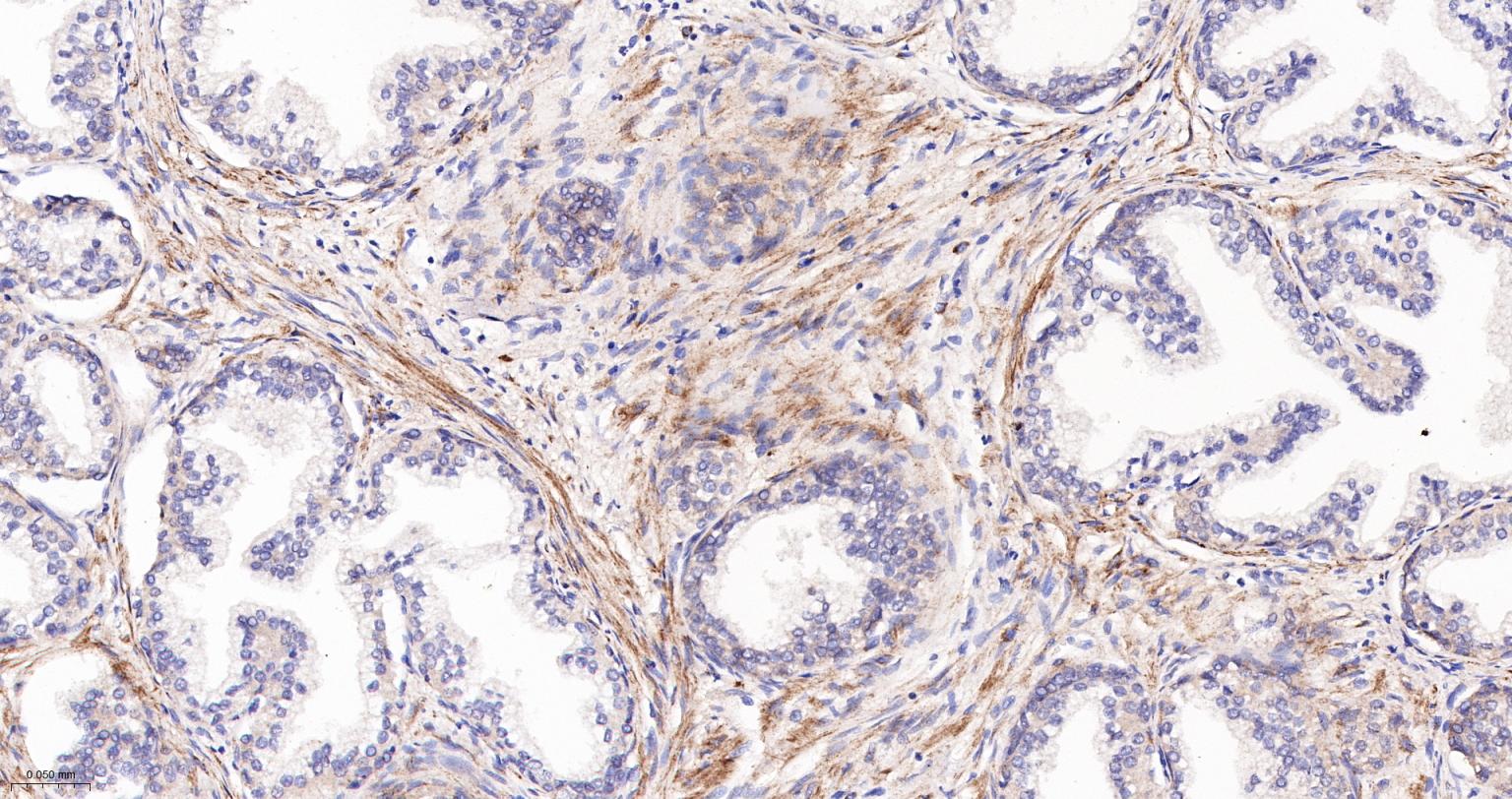 Paraformaldehyde-fixed, paraffin embedded Human Prostate Tumor; Antigen retrieval by boiling in sodium citrate buffer (pH6.0) for 15 min; The section was incubated with LPA1 Monoclonal Antibody, Unconjugated (bsm-61606R) at 1:200 overnight at 4°C, followed by conjugation to the bs-0295G-HRP and DAB (C-0010) staining.