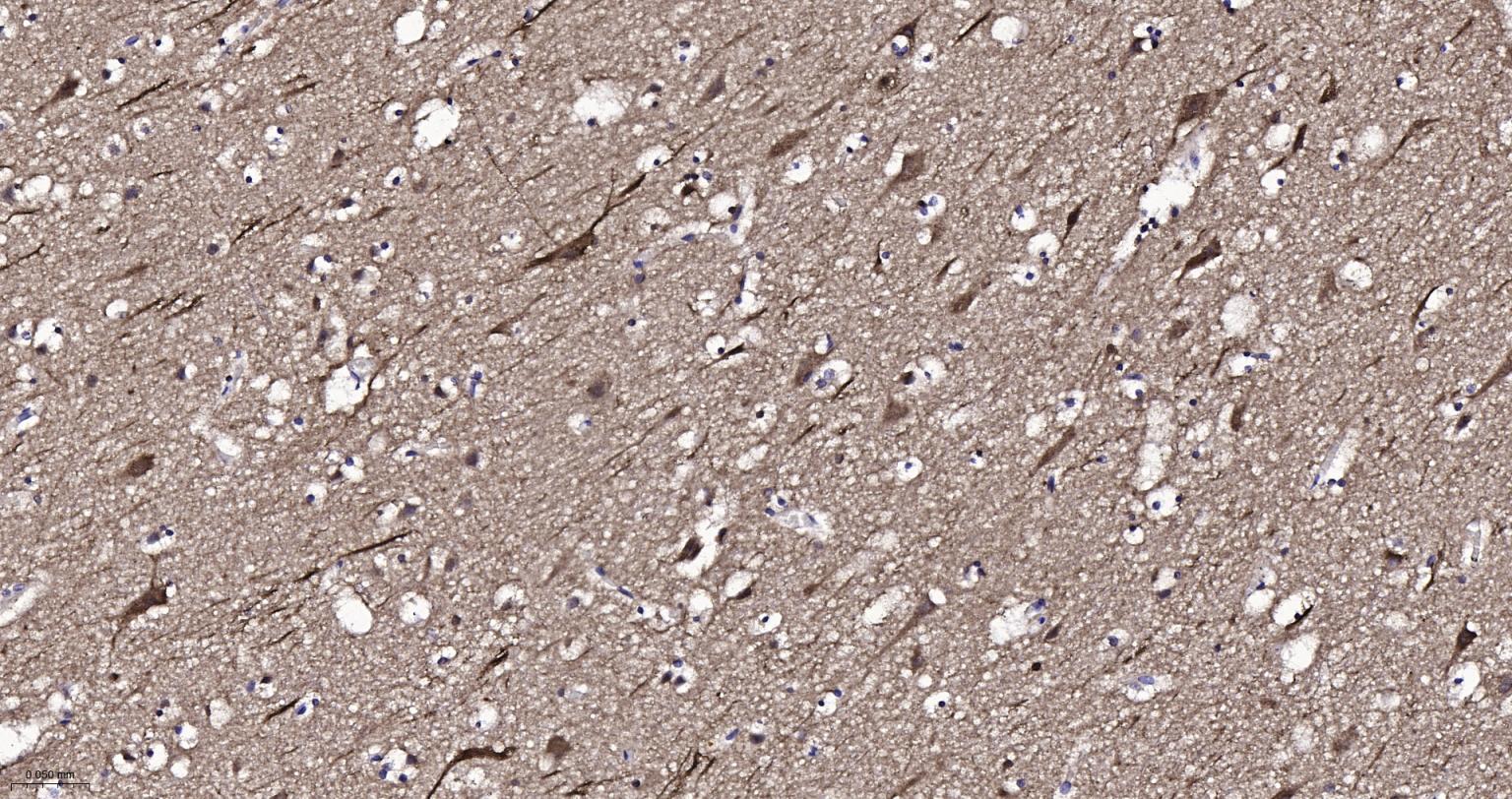 Paraformaldehyde-fixed, paraffin embedded Human Cerebrum; Antigen retrieval by boiling in sodium citrate buffer (pH6.0) for 15 min; The section was incubated with SLIT2 Monoclonal Antibody, Unconjugated (bsm-61608R) at 1:200 overnight at 4°C, followed by conjugation to the bs-0295G-HRP and DAB (C-0010) staining.