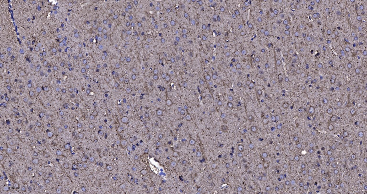 Paraformaldehyde-fixed, paraffin embedded Rat Cerebrum; Antigen retrieval by boiling in sodium citrate buffer (pH6.0) for 15 min; The section was incubated with SLIT2 Monoclonal Antibody, Unconjugated (bsm-61608R) at 1:200 overnight at 4°C, followed by conjugation to the bs-0295G-HRP and DAB (C-0010) staining.