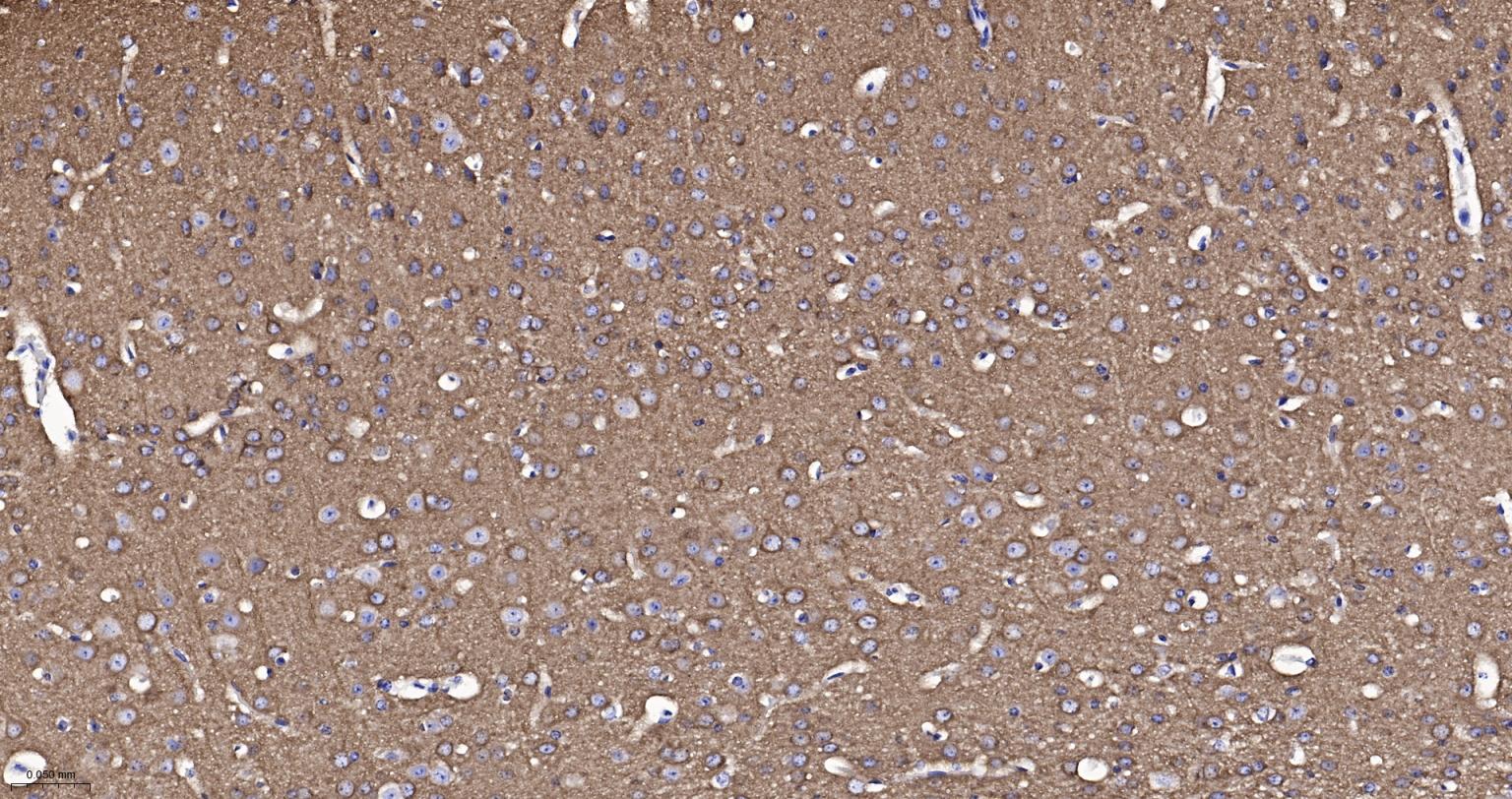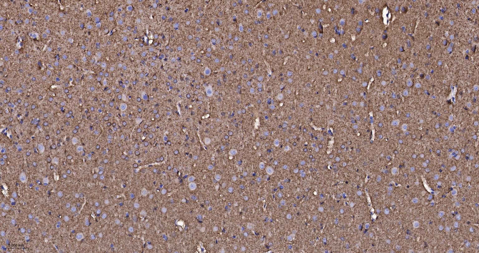 Paraformaldehyde-fixed, paraffin embedded Rat Cerebrum; Antigen retrieval by boiling in sodium citrate buffer (pH6.0) for 15 min; The section was incubated with Dynamin 1 Monoclonal Antibody, Unconjugated (bsm-61620R) at 1:200 overnight at 4°C, followed by conjugation to the bs-0295G-HRP and DAB (C-0010) staining.