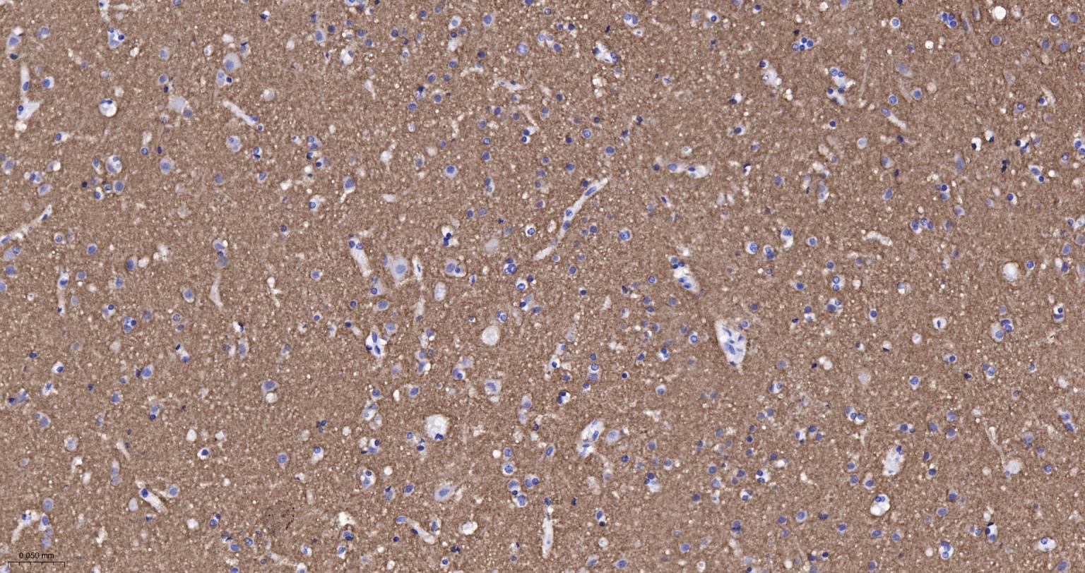 Paraformaldehyde-fixed, paraffin embedded Human Cerebrum; Antigen retrieval by boiling in sodium citrate buffer (pH6.0) for 15 min; The section was incubated with Dynamin 1 Monoclonal Antibody, Unconjugated (bsm-61620R) at 1:200 overnight at 4°C, followed by conjugation to the bs-0295G-HRP and DAB (C-0010) staining.