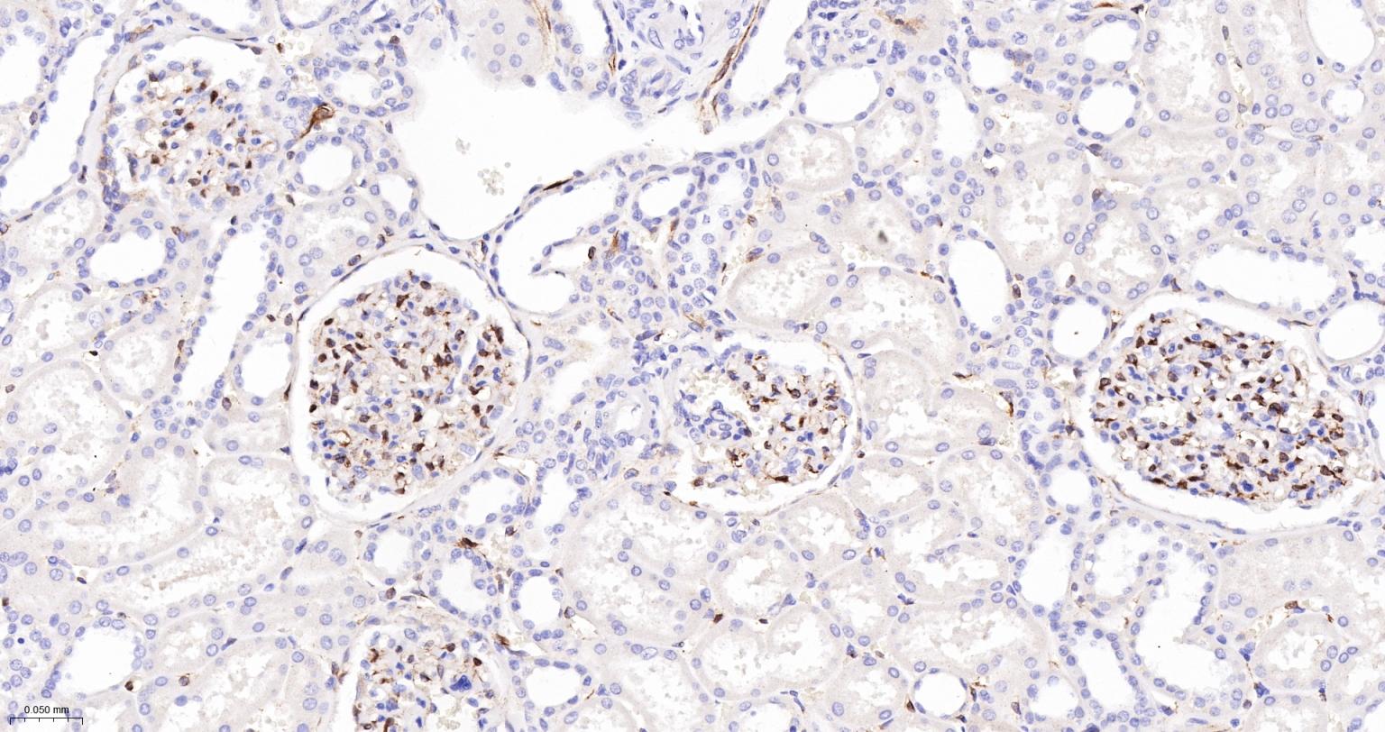 Paraformaldehyde-fixed, paraffin embedded Human Kidney; Antigen retrieval by boiling in sodium citrate buffer (pH6.0) for 15 min; The section was incubated with FSCN1 Monoclonal Antibody, Unconjugated (bsm-61626R) at 1:200 overnight at 4°C, followed by conjugation to the bs-0295G-HRP and DAB (C-0010) staining.