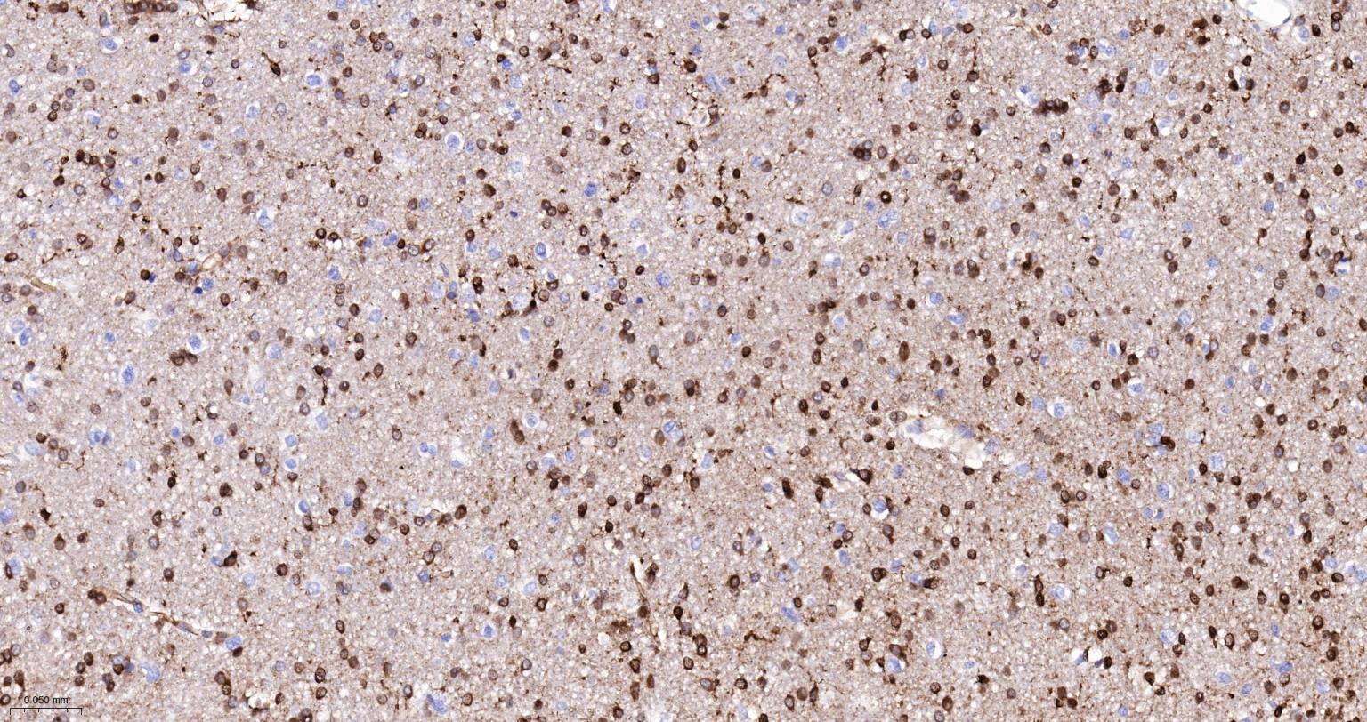 Paraformaldehyde-fixed, paraffin embedded Human Glioma; Antigen retrieval by boiling in sodium citrate buffer (pH6.0) for 15 min; The section was incubated with FSCN1 Monoclonal Antibody, Unconjugated (bsm-61626R) at 1:200 overnight at 4°C, followed by conjugation to the bs-0295G-HRP and DAB (C-0010) staining.