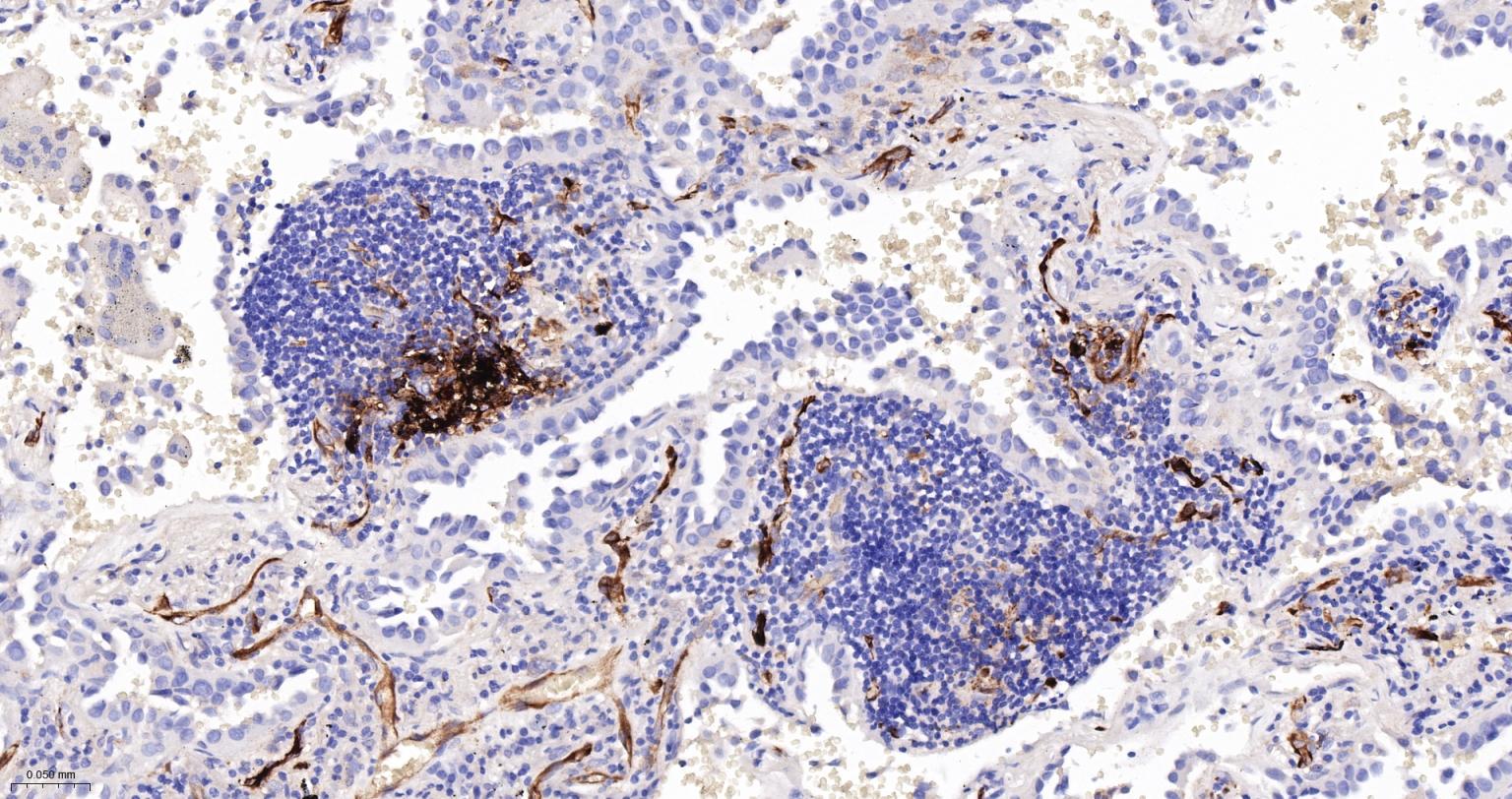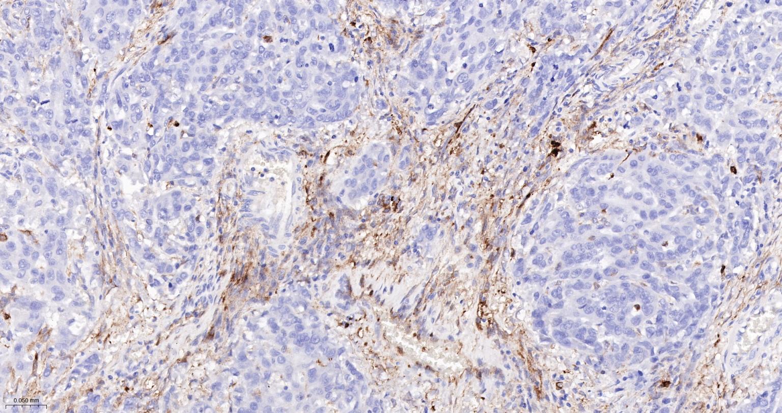 Paraformaldehyde-fixed, paraffin embedded Human Lung Cancer; Antigen retrieval by boiling in sodium citrate buffer (pH6.0) for 15 min; The section was incubated with FSCN1 Monoclonal Antibody, Unconjugated (bsm-61626R) at 1:200 overnight at 4°C, followed by conjugation to the bs-0295G-HRP and DAB (C-0010) staining.