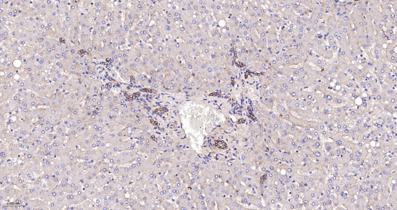 Paraformaldehyde-fixed, paraffin embedded Human Liver; Antigen retrieval by boiling in sodium citrate buffer (pH6.0) for 15 min; The section was incubated with NDRG1 Monoclonal Antibody, Unconjugated (bsm-61629R) at 1:200 overnight at 4°C, followed by conjugation to the bs-0295G-HRP and DAB (C-0010) staining.