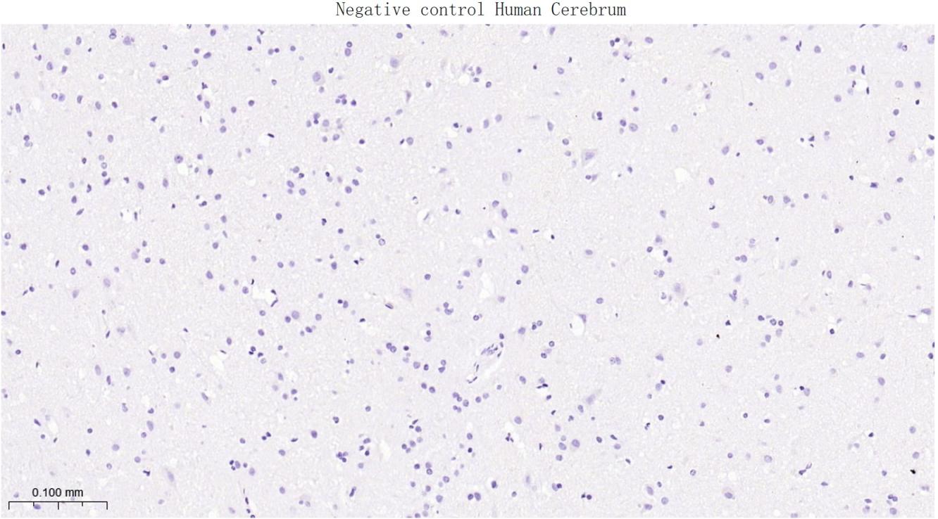 (Negative control)Paraformaldehyde-fixed, paraffin embedded Human Cerebrum; Antigen retrieval by boiling in sodium citrate buffer (pH6.0) for 15 min; Antibody incubation with CD207 Monoclonal Antibody, Unconjugated(bsm-61646R) at 1:200 overnight at 4°C, followed by conjugation to the bs-0295G-HRP and DAB (C-0010) staining.