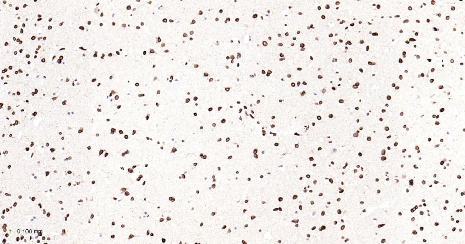 Paraformaldehyde-fixed, paraffin embedded Human Cerebrum; Antigen retrieval by boiling in sodium citrate buffer (pH6.0) for 15 min; Antibody incubation with Lamin B2 Monoclonal Antibody, Unconjugated(bsm-61648R) at 1:200 overnight at 4°C, followed by conjugation to the bs-0295G-HRP and DAB (C-0010) staining.