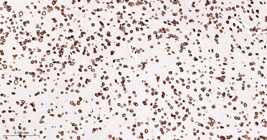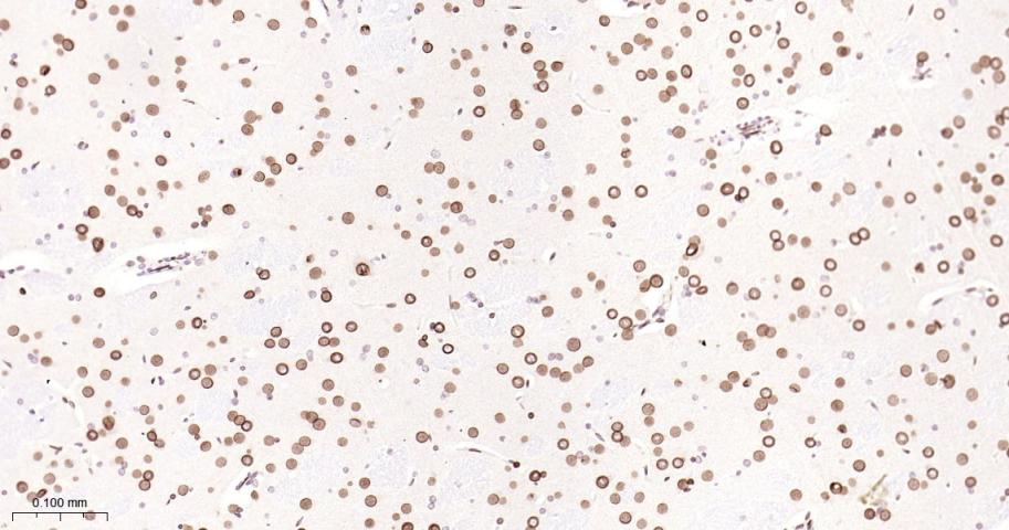 Paraformaldehyde-fixed, paraffin embedded Rat Cerebrum; Antigen retrieval by boiling in sodium citrate buffer (pH6.0) for 15 min; Antibody incubation with Lamin B2 Monoclonal Antibody, Unconjugated(bsm-61648R) at 1:200 overnight at 4°C, followed by conjugation to the bs-0295G-HRP and DAB (C-0010) staining.
