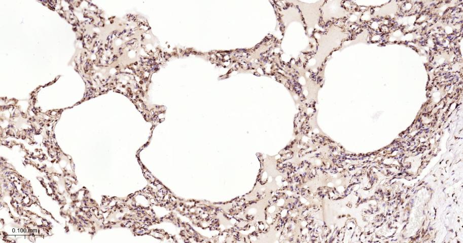 Paraformaldehyde-fixed, paraffin embedded Human Lung; Antigen retrieval by boiling in sodium citrate buffer (pH6.0) for 15 min; The section was incubated with USP10 Monoclonal Antibody, Unconjugated (bsm-61654R) at 1:200 overnight at 4°C, followed by conjugation to the bs-0295G-HRP and DAB (C-0010) staining.
