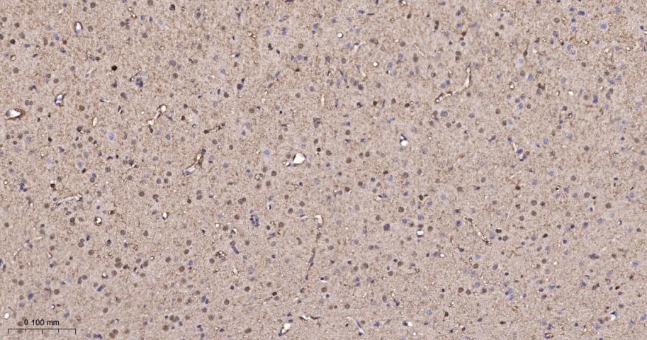 Paraformaldehyde-fixed, paraffin embedded Rat Cerebrum; Antigen retrieval by boiling in sodium citrate buffer (pH6.0) for 15 min; The section was incubated with PAK2 Monoclonal Antibody, Unconjugated (bsm-61673R) at 1:200 overnight at 4°C, followed by conjugation to the bs-0295G-HRP and DAB (C-0010) staining.