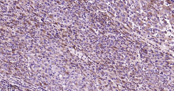 Paraformaldehyde-fixed, paraffin embedded Human Liver; Antigen retrieval by boiling in sodium citrate buffer (pH6.0) for 15 min; Antibody incubation with TRPM7 Monoclonal Antibody, Unconjugated(bsm-61679R) at 1:200 overnight at 4°C, followed by conjugation to the bs-0295G-HRP and DAB (C-0010) staining.