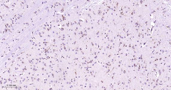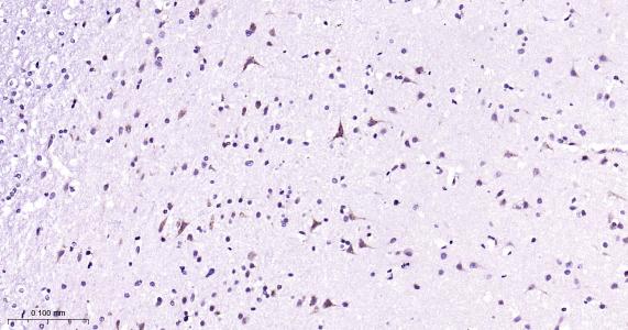 Paraformaldehyde-fixed, paraffin embedded Human Cerebrum; Antigen retrieval by boiling in sodium citrate buffer (pH6.0) for 15 min; Antibody incubation with TRPM7 Monoclonal Antibody, Unconjugated(bsm-61679R) at 1:200 overnight at 4°C, followed by conjugation to the bs-0295G-HRP and DAB (C-0010) staining.