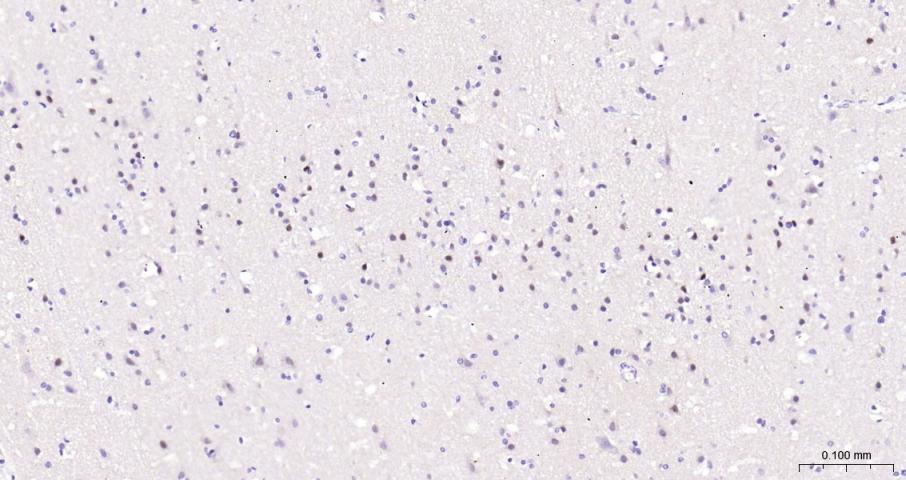 Paraformaldehyde-fixed, paraffin embedded Human Cerebrum; Antigen retrieval by boiling in sodium citrate buffer (pH6.0) for 15 min; Antibody incubation with EGR1 Monoclonal Antibody, Unconjugated(bsm-61687R) at 1:200 overnight at 4°C, followed by conjugation to the bs-0295G-HRP and DAB (C-0010) staining.
