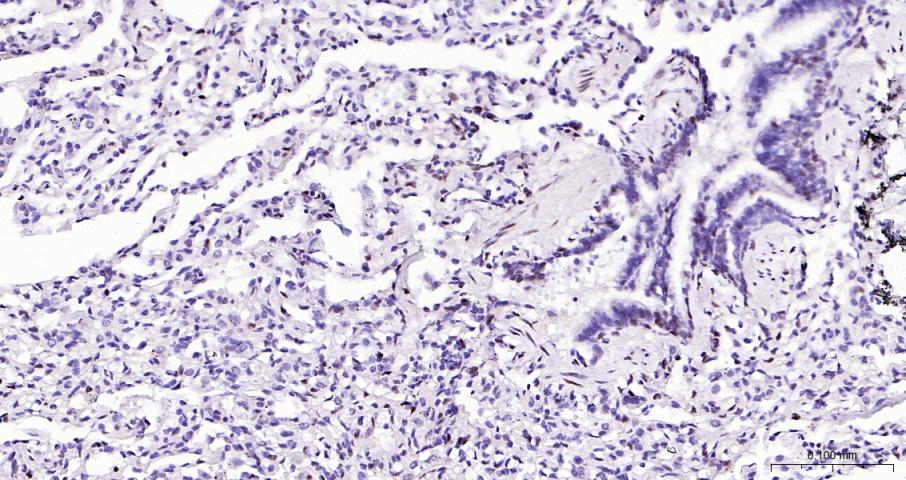 Paraformaldehyde-fixed, paraffin embedded Human Lung; Antigen retrieval by boiling in sodium citrate buffer (pH6.0) for 15 min; Antibody incubation with EGR1 Monoclonal Antibody, Unconjugated(bsm-61687R) at 1:200 overnight at 4°C, followed by conjugation to the bs-0295G-HRP and DAB (C-0010) staining.