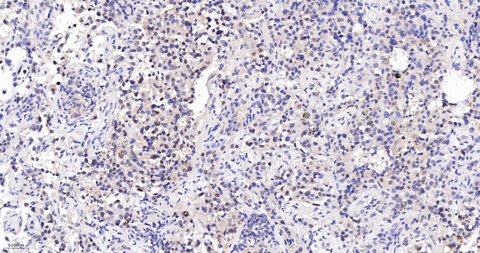Paraformaldehyde-fixed, paraffin embedded Human Testicles; Antigen retrieval by boiling in sodium citrate buffer (pH6.0) for 15 min; The section was incubated with Cullin 1 Monoclonal Antibody, Unconjugated (bsm-61690R) at 1:200 overnight at 4°C, followed by conjugation to the bs-0295G-HRP and DAB (C-0010) staining.