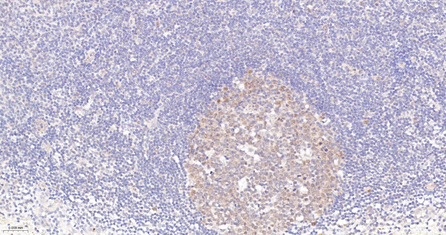 Paraformaldehyde-fixed, paraffin embedded Human Tonsil; Antigen retrieval by boiling in sodium citrate buffer (pH6.0) for 15 min; The section was incubated with Cullin 1 Monoclonal Antibody, Unconjugated (bsm-61690R) at 1:200 overnight at 4°C, followed by conjugation to the bs-0295G-HRP and DAB (C-0010) staining.