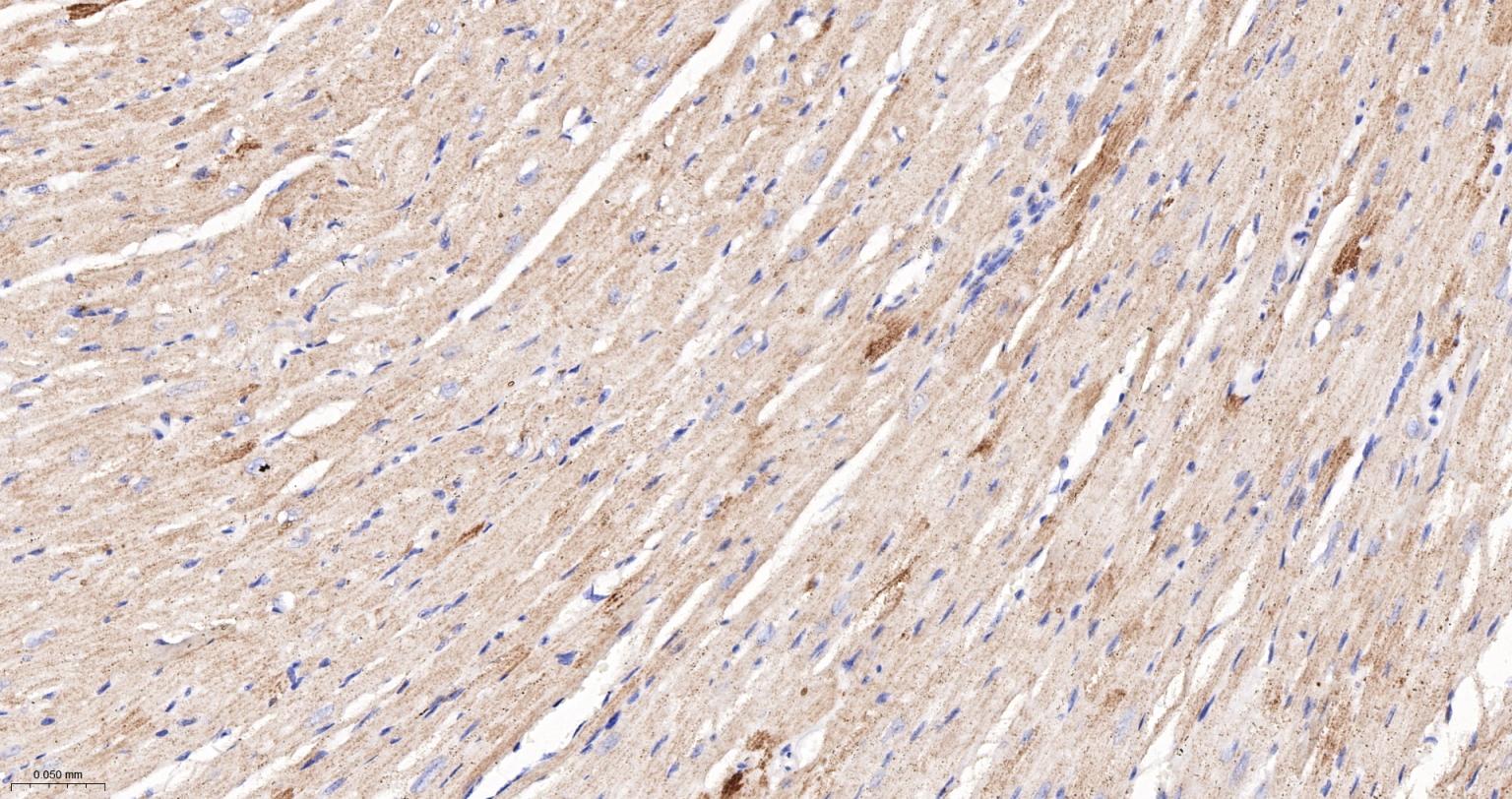 Paraformaldehyde-fixed, paraffin embedded Human Heart; Antigen retrieval by boiling in sodium citrate buffer (pH6.0) for 15 min; The section was incubated with PDHB Monoclonal Antibody, Unconjugated (bsm-61702R) at 1:200 overnight at 4°C, followed by conjugation to the bs-0295G-HRP and DAB (C-0010) staining.