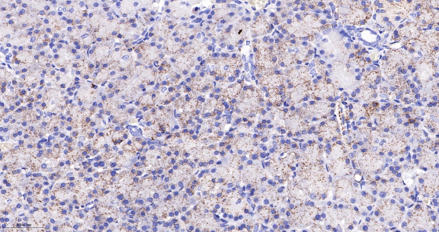 Paraformaldehyde-fixed, paraffin embedded Human Pancreas; Antigen retrieval by boiling in sodium citrate buffer (pH6.0) for 15 min; The section was incubated with PDHB Monoclonal Antibody, Unconjugated (bsm-61702R) at 1:200 overnight at 4°C, followed by conjugation to the bs-0295G-HRP and DAB (C-0010) staining.