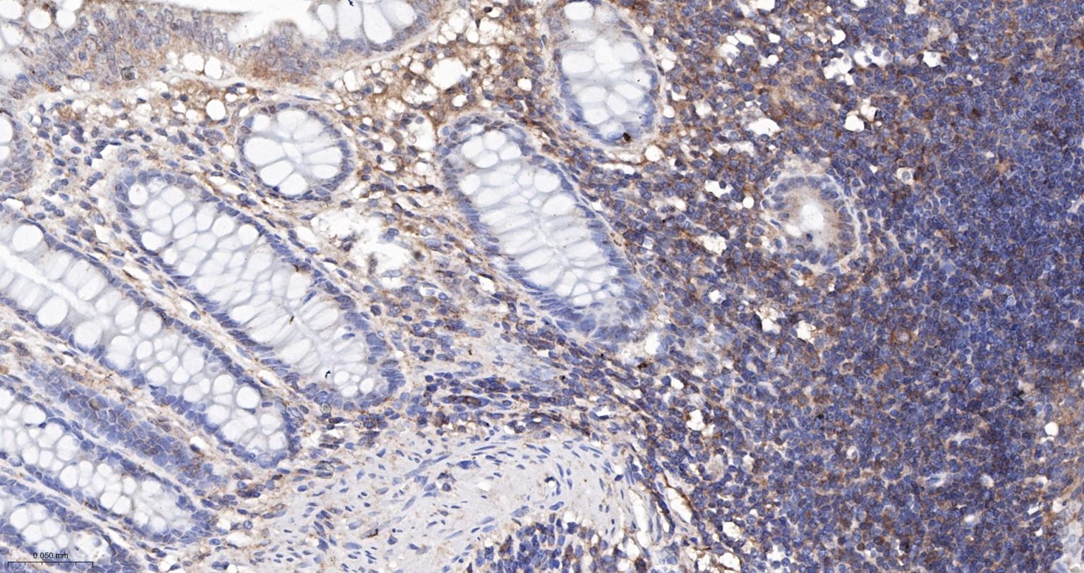 Paraformaldehyde-fixed, paraffin embedded Human Colon; Antigen retrieval by boiling in sodium citrate buffer (pH6.0) for 15 min; The section was incubated with GRK3 Monoclonal Antibody, Unconjugated (bsm-61714R) at 1:200 overnight at 4°C, followed by conjugation to the bs-0295G-HRP and DAB (C-0010) staining.