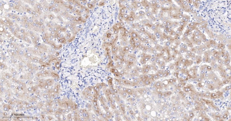 Paraformaldehyde-fixed, paraffin embedded Human Liver; Antigen retrieval by boiling in sodium citrate buffer (pH6.0) for 15 min; The section was incubated with IGFBP2 Monoclonal Antibody, Unconjugated (bsm-61716R) at 1:200 overnight at 4°C, followed by conjugation to the bs-0295G-HRP and DAB (C-0010) staining.