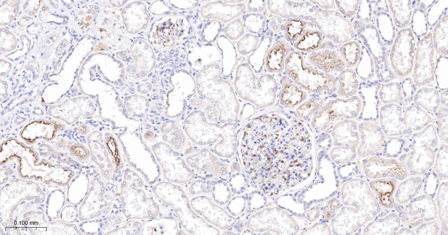 Paraformaldehyde-fixed, paraffin embedded Human Kidney; Antigen retrieval by boiling in sodium citrate buffer (pH6.0) for 15 min; The section was incubated with IGFBP2 Monoclonal Antibody, Unconjugated (bsm-61716R) at 1:200 overnight at 4°C, followed by conjugation to the bs-0295G-HRP and DAB (C-0010) staining.