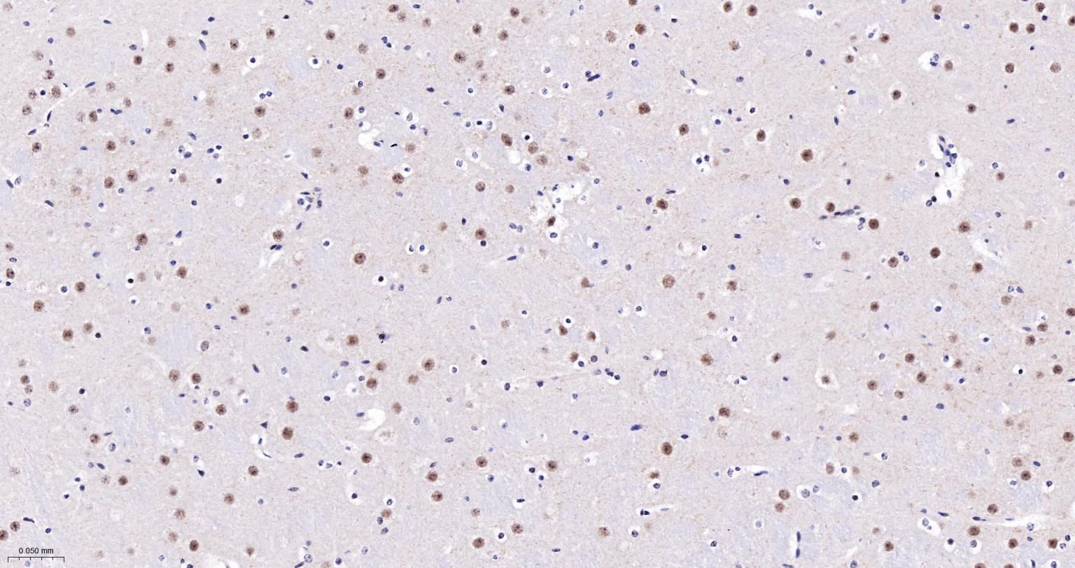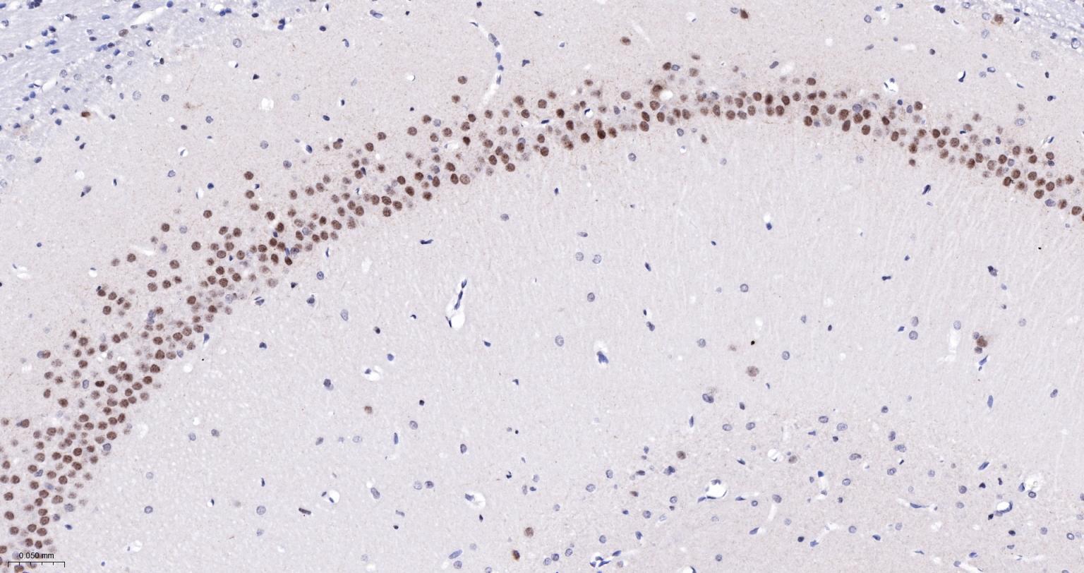 Paraformaldehyde-fixed, paraffin embedded Rat Cerebrum; Antigen retrieval by boiling in sodium citrate buffer (pH6.0) for 15 min; The section was incubated with BAF53A Monoclonal Antibody, Unconjugated (bsm-61726R) at 1:200 overnight at 4°C, followed by conjugation to the bs-0295G-HRP and DAB (C-0010) staining.