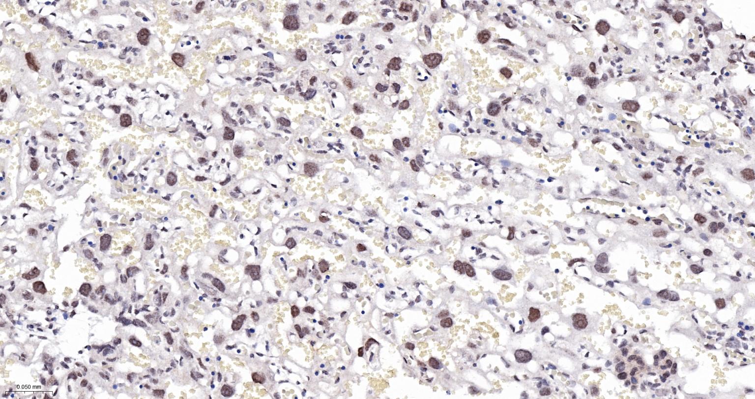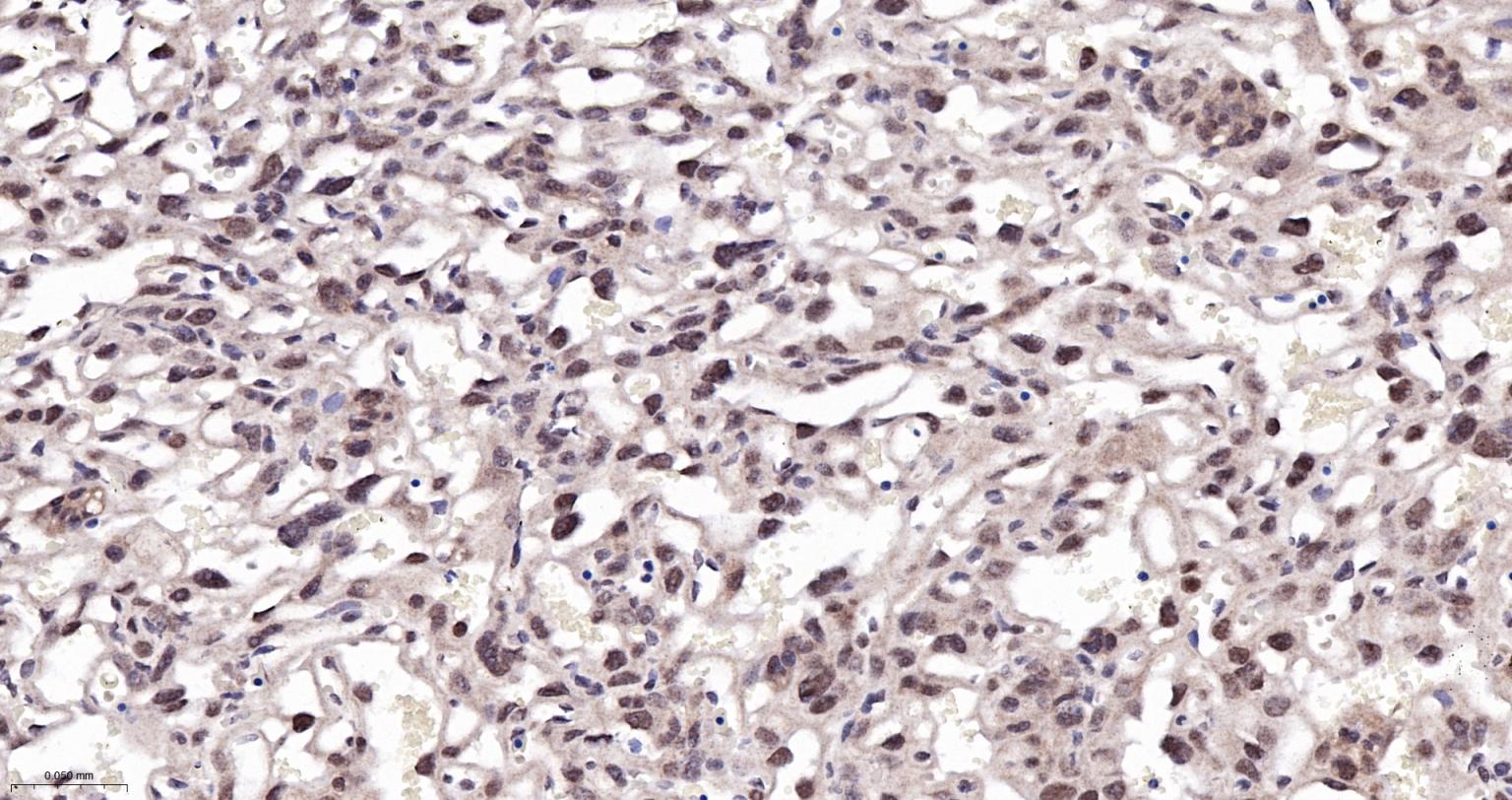 Paraformaldehyde-fixed, paraffin embedded Rat Placenta; Antigen retrieval by boiling in sodium citrate buffer (pH6.0) for 15 min; The section was incubated with BAF53A Monoclonal Antibody, Unconjugated (bsm-61726R) at 1:200 overnight at 4°C, followed by conjugation to the bs-0295G-HRP and DAB (C-0010) staining.