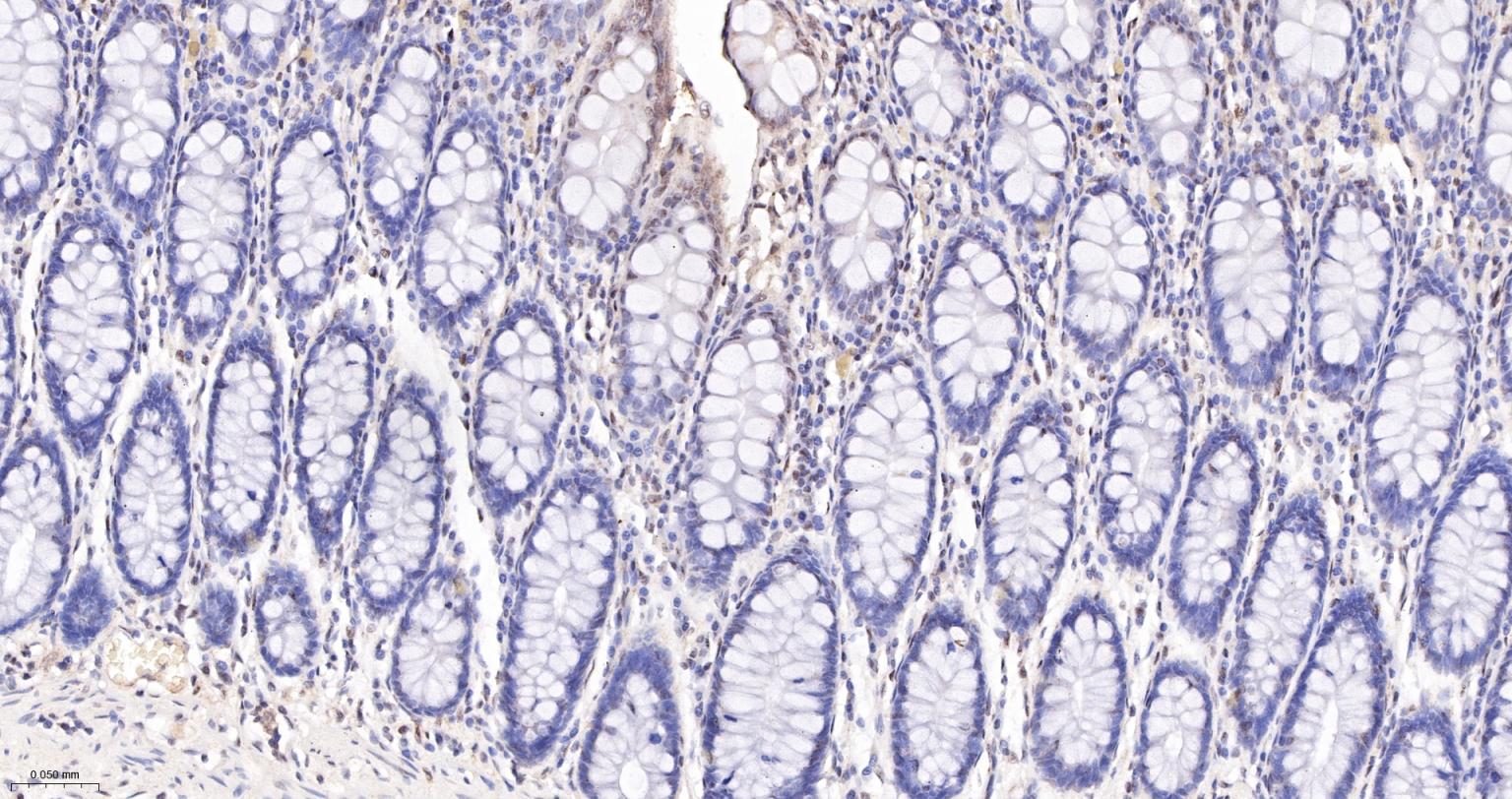 Paraformaldehyde-fixed, paraffin embedded Human Colon; Antigen retrieval by boiling in sodium citrate buffer (pH6.0) for 15 min; The section was incubated with BAF53A Monoclonal Antibody, Unconjugated (bsm-61726R) at 1:200 overnight at 4°C, followed by conjugation to the bs-0295G-HRP and DAB (C-0010) staining.