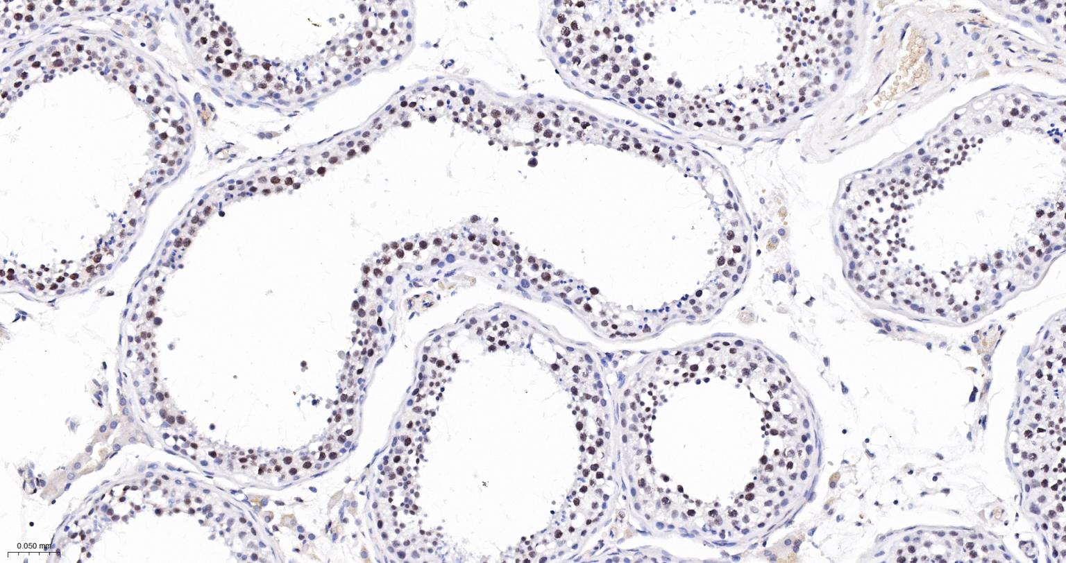 Paraformaldehyde-fixed, paraffin embedded Human Testicles; Antigen retrieval by boiling in sodium citrate buffer (pH6.0) for 15 min; The section was incubated with BAF53A Monoclonal Antibody, Unconjugated (bsm-61726R) at 1:200 overnight at 4°C, followed by conjugation to the bs-0295G-HRP and DAB (C-0010) staining.