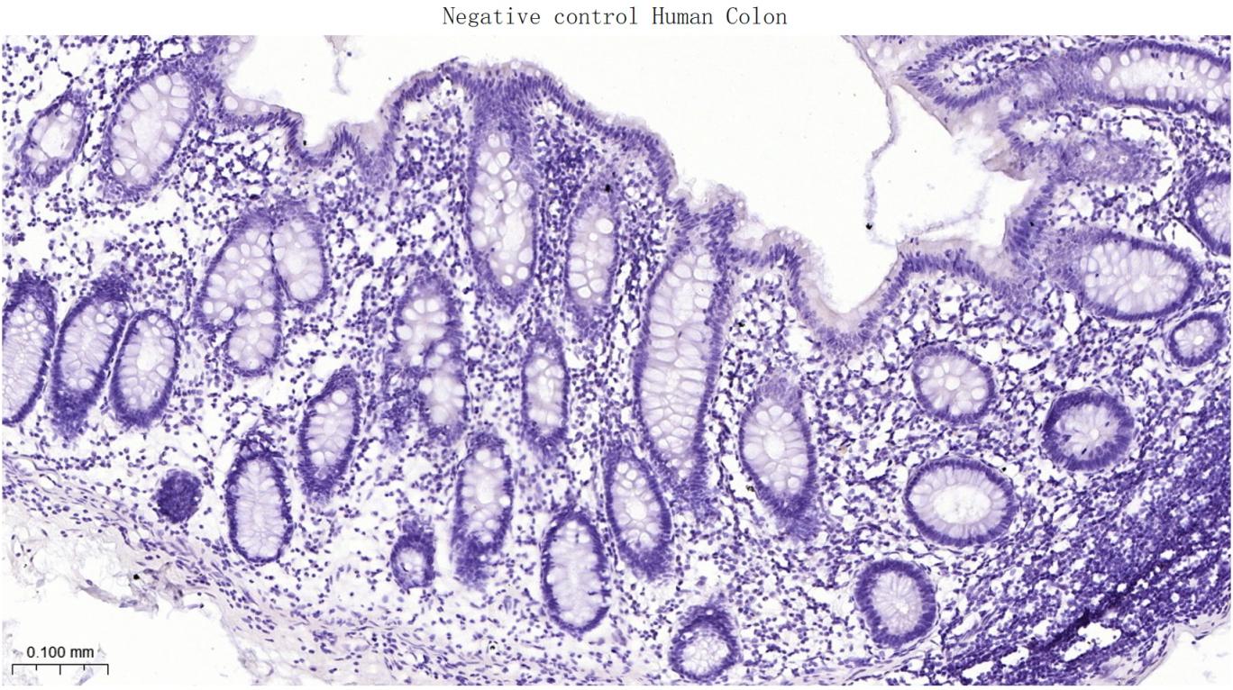 (Negative control)Paraformaldehyde-fixed, paraffin embedded Human Colon; Antigen retrieval by boiling in sodium citrate buffer (pH6.0) for 15 min; Antibody incubation with NAPSIN A Monoclonal Antibody, Unconjugated(bsm-61759R) at 1:200 overnight at 4°C, followed by conjugation to the bs-0295G-HRP and DAB (C-0010) staining.