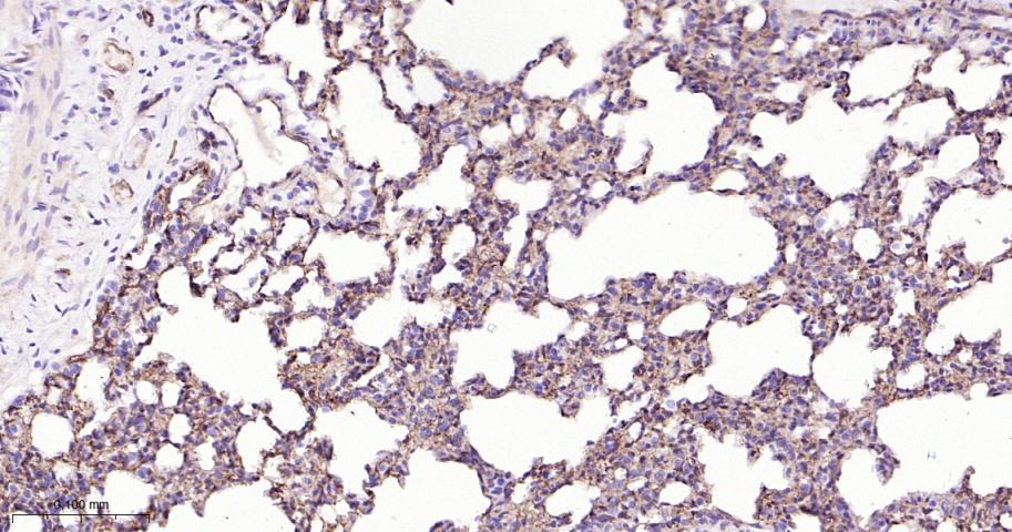 Paraformaldehyde-fixed, paraffin embedded Mouse Lung; Antigen retrieval by boiling in sodium citrate buffer (pH6.0) for 15 min; The section was incubated with CDH6 Monoclonal Antibody, Unconjugated (bsm-61762R) at 1:200 overnight at 4°C, followed by conjugation to the bs-0295G-HRP and DAB (C-0010) staining.