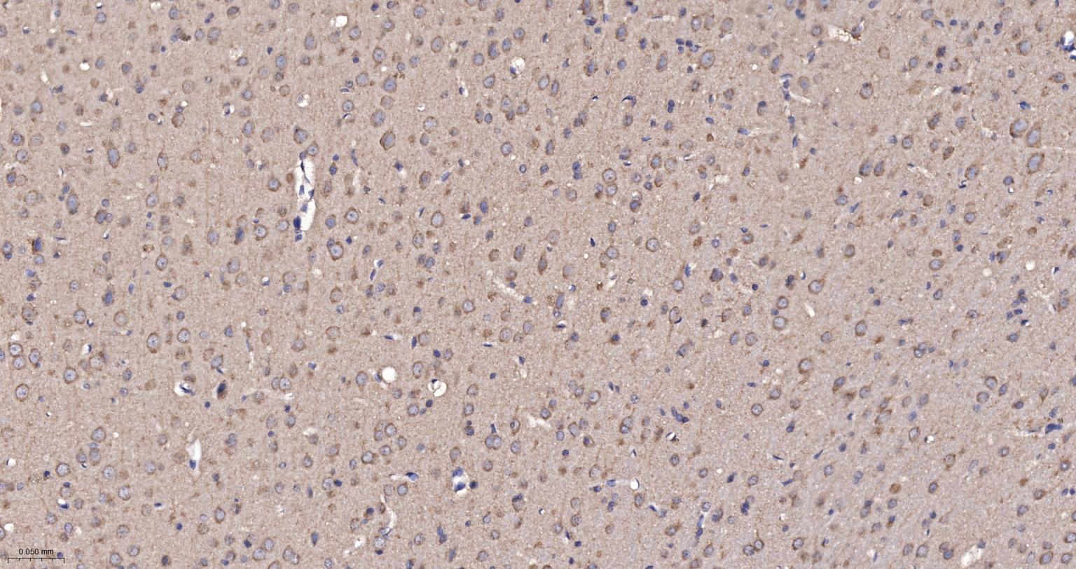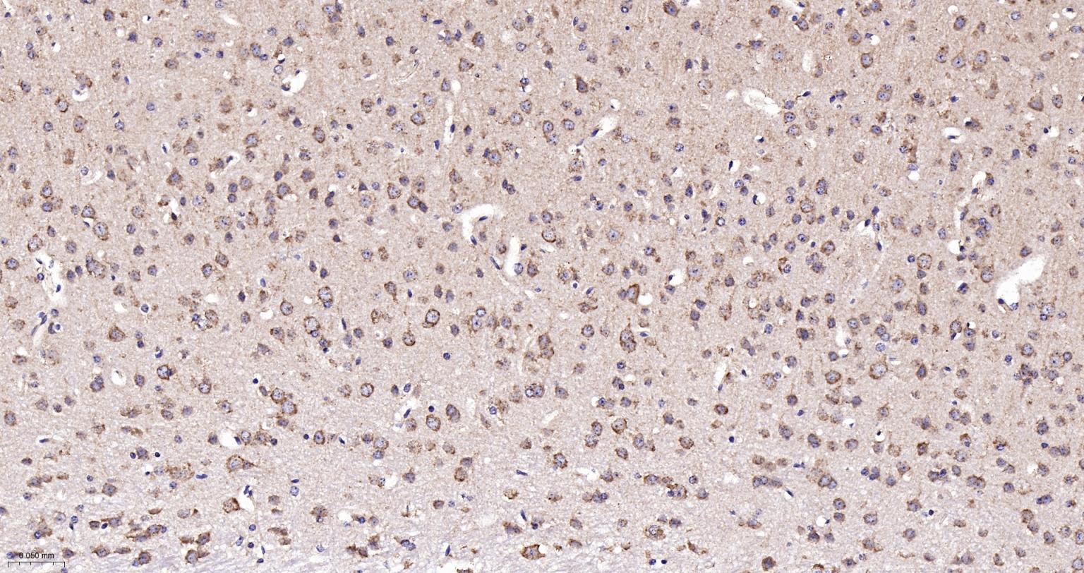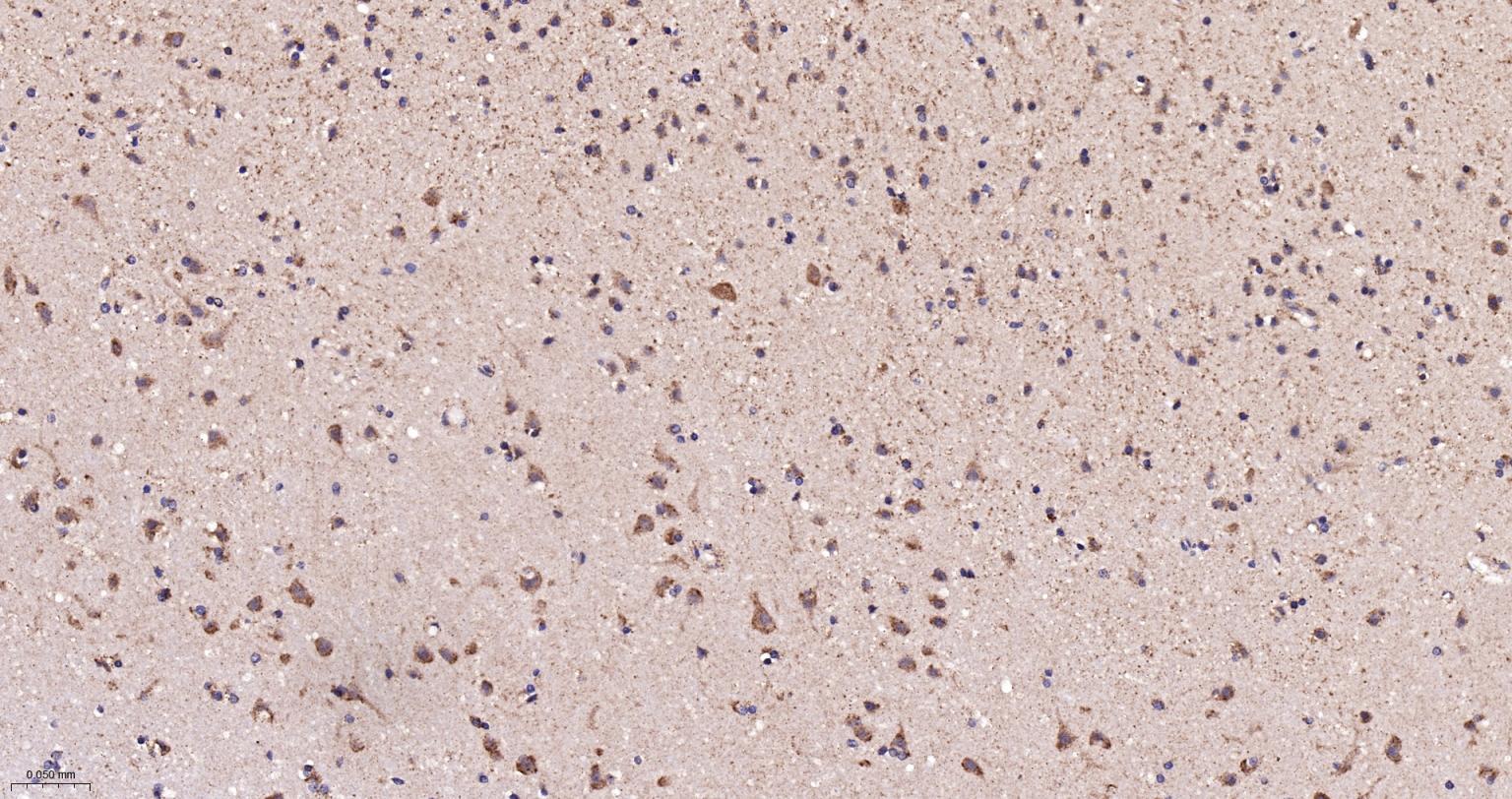 Paraformaldehyde-fixed, paraffin embedded Rat Cerebrum; Antigen retrieval by boiling in sodium citrate buffer (pH6.0) for 15 min; The section was incubated with Thioredoxin 2 Monoclonal Antibody, Unconjugated (bsm-61794R) at 1:200 overnight at 4°C, followed by conjugation to the bs-0295G-HRP and DAB (C-0010) staining.