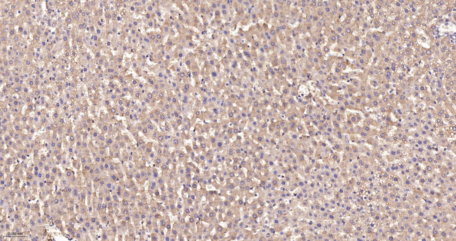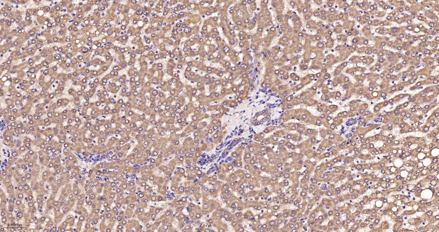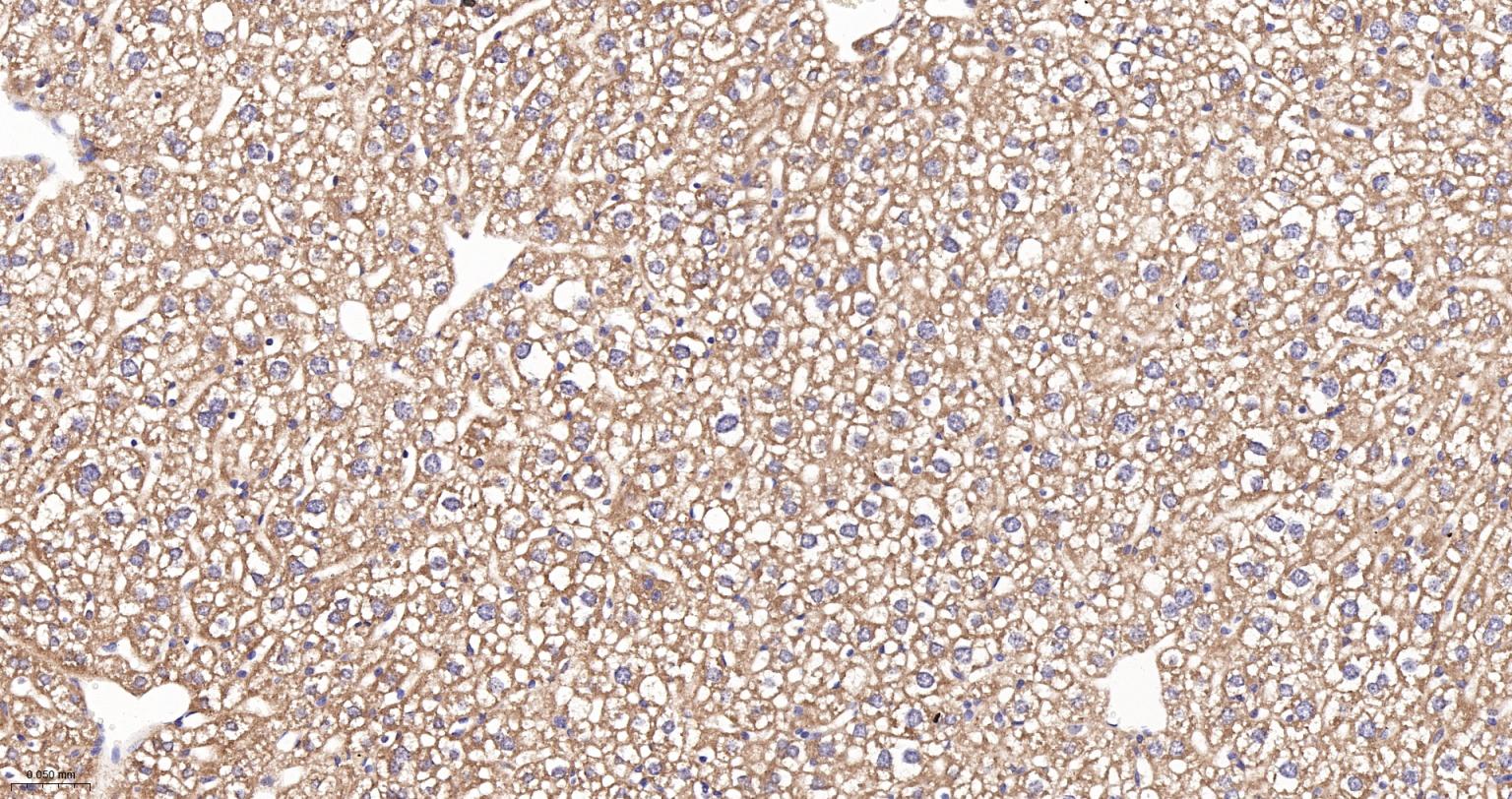 Paraformaldehyde-fixed, paraffin embedded Rat Liver; Antigen retrieval by boiling in sodium citrate buffer (pH6.0) for 15 min; The section was incubated with Thioredoxin 2 Monoclonal Antibody, Unconjugated (bsm-61794R) at 1:200 overnight at 4°C, followed by conjugation to the bs-0295G-HRP and DAB (C-0010) staining.