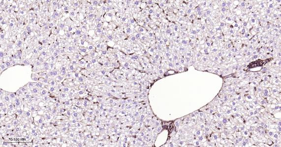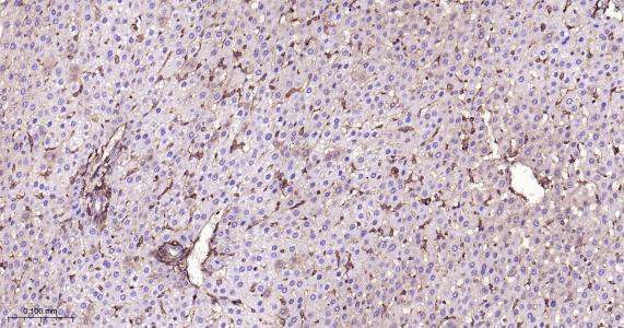 Paraformaldehyde-fixed, paraffin embedded Mouse Liver; Antigen retrieval by boiling in sodium citrate buffer (pH6.0) for 15 min; Antibody incubation with CRMP2 Monoclonal Antibody, Unconjugated(bsm-61800R) at 1:200 overnight at 4°C, followed by conjugation to the bs-0295G-HRP and DAB (C-0010) staining.